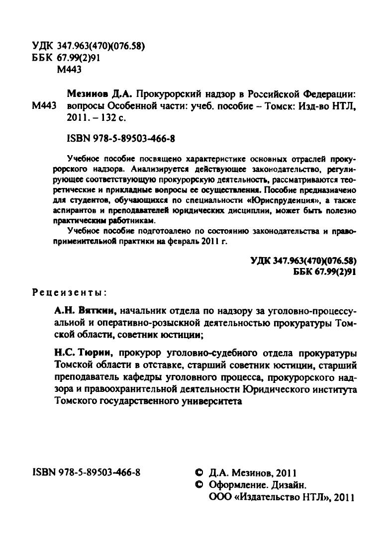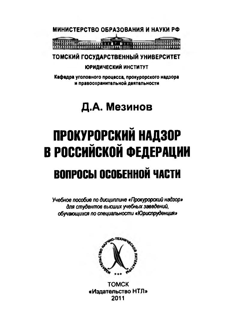 Прокурорский надзор в Российской Федерации: вопросы Особенной части