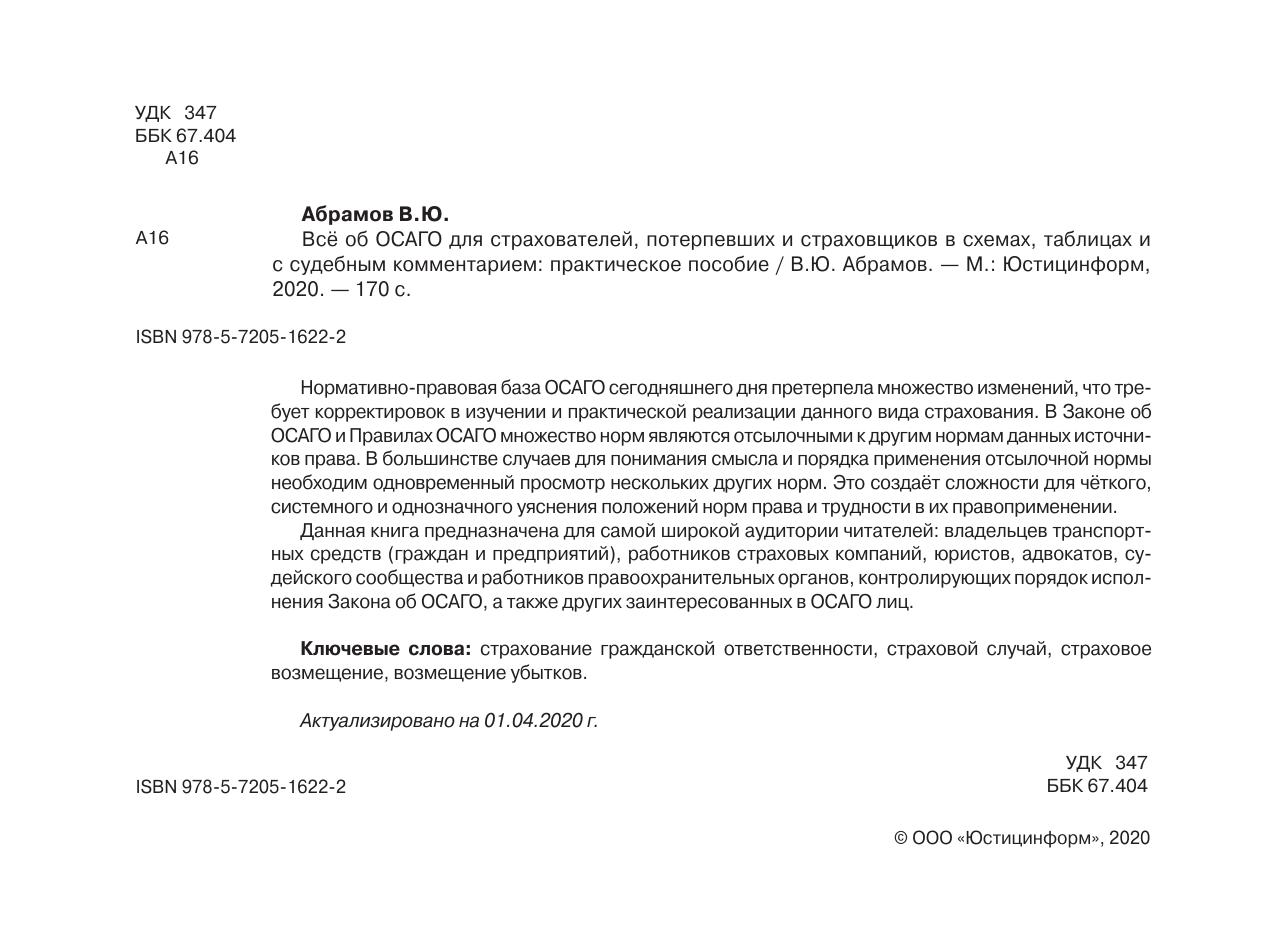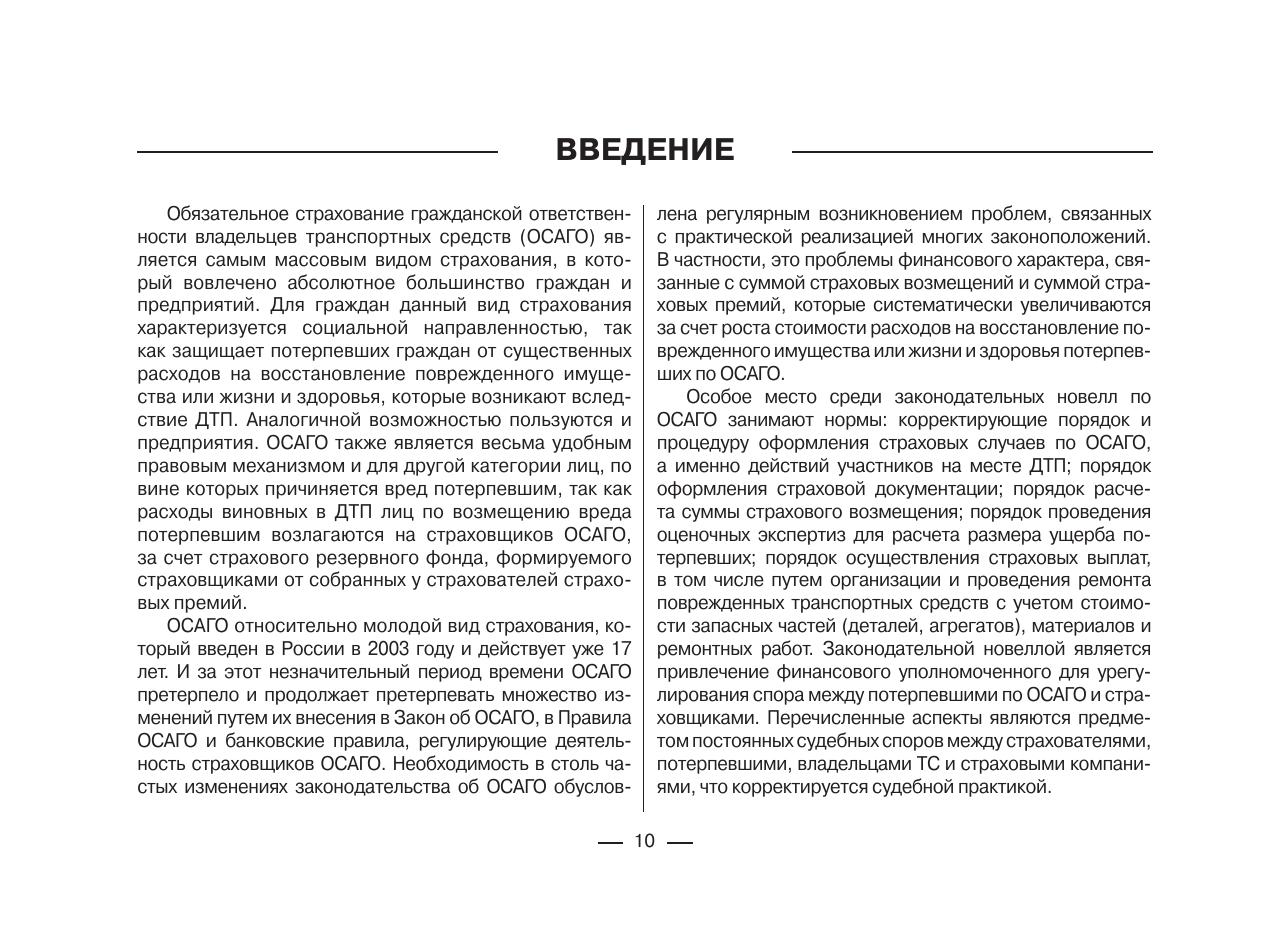 Нормативно-правовая база ОСАГО сегодняшнего дня претерпела множество изменений, что требует корректировок в изучении и практической реализации данного вида страхования. В Законе об ОСАГО и Правилах ОСАГО множество норм являются отсылочными к другим нормам данных источников права. В большинстве случаев для понимания смысла и порядка применения отсылочной нормы необходим одновременный просмотр нескольких других норм. Это создаёт сложности для чёткого, системного и однозначного уяснения положений норм права и трудности в их правоприменении. Данная книга предназначена для самой широкой аудитории читателей: владельцев транспортных средств (граждан и предприятий), работников страховых компаний, юристов, адвокатов, судейского сообщества и работников правоохранительных органов, контролирующих порядок исполнения Закона об ОСАГО, а также других заинтересованных в ОСАГО лиц.