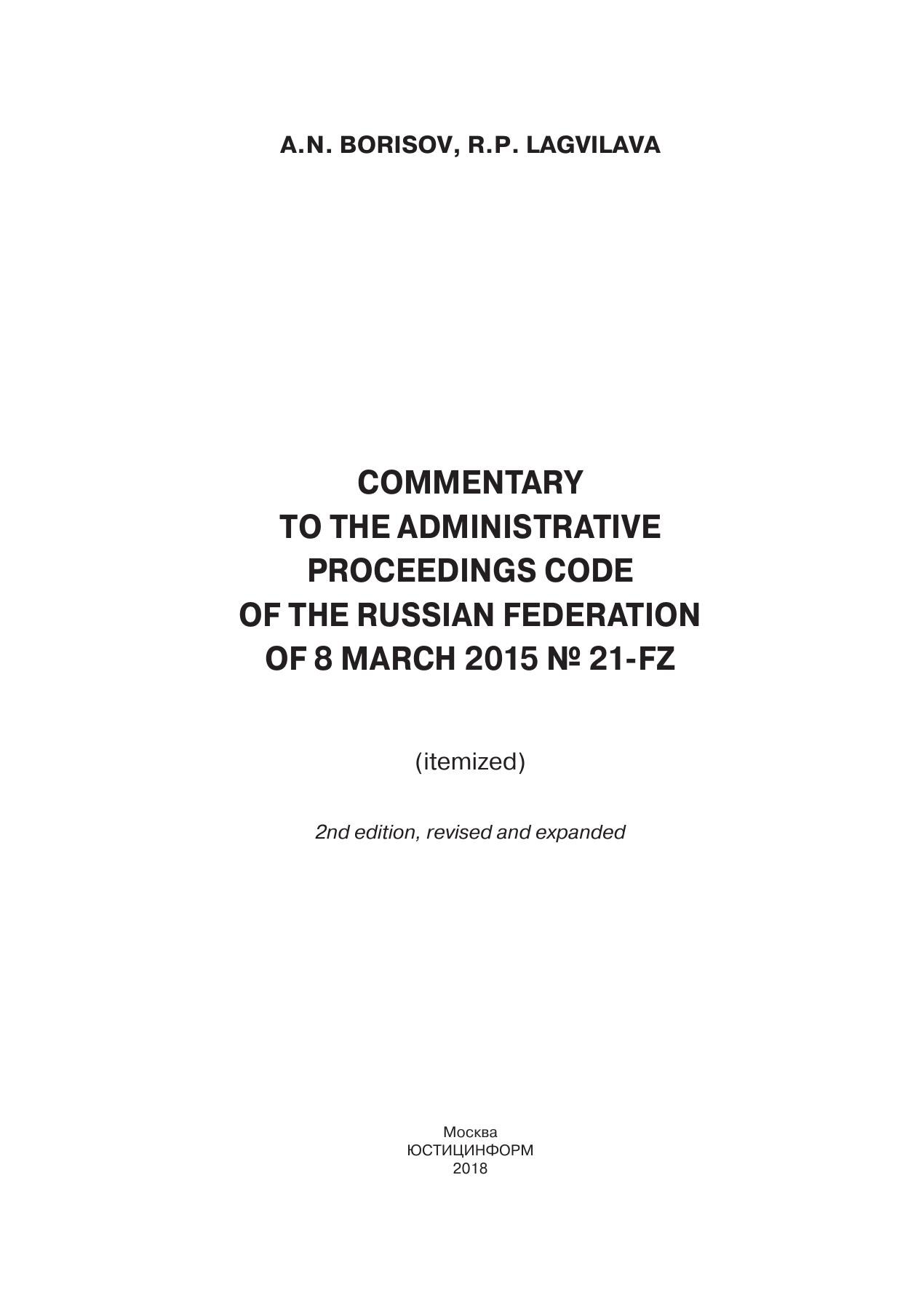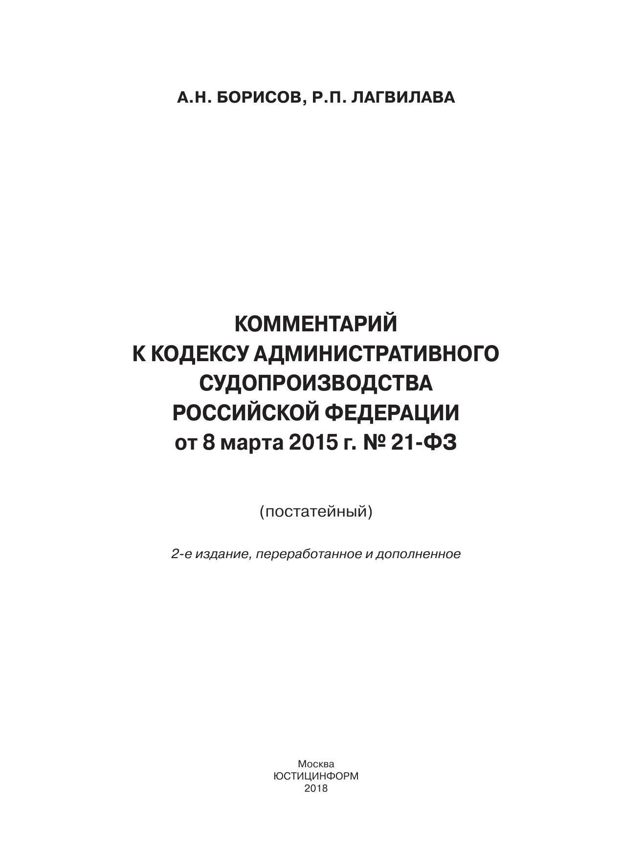 Комментарий к Кодексу административного судопроизводства Российской Федерации от 8 марта 2015 г. № 21-ФЗ: (постатейный)