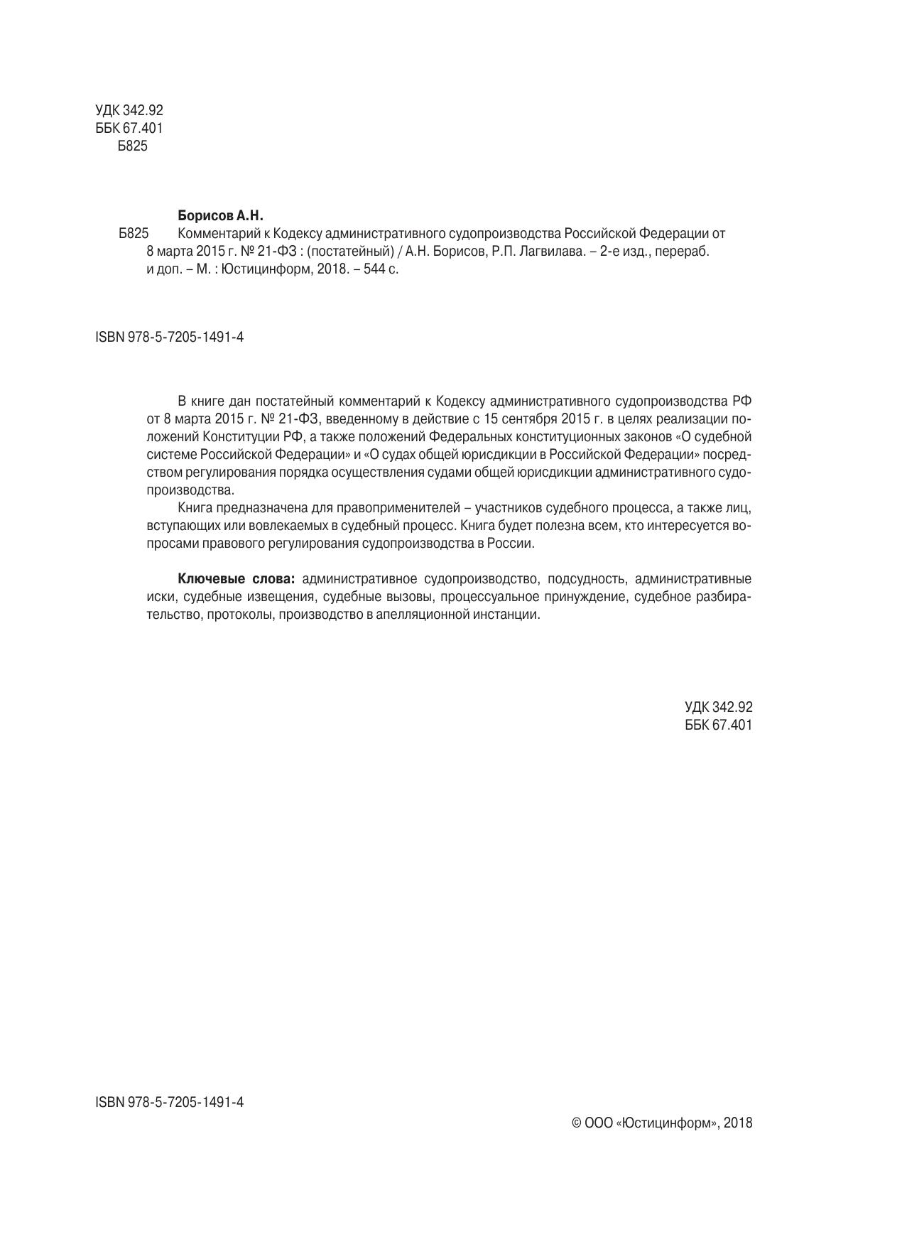 В книге дан постатейный комментарий к Кодексу административного судопроизводства РФ от 8 марта 2015 г. № 21-ФЗ, введенному в действие с 15 сентября 2015 г. в целях реализации положений Конституции РФ, а также положений Федеральных конституционных законов «О судебной системе Российской Федерации» и «О судах общей юрисдикции в Российской Федерации» посредством регулирования порядка осуществления судами общей юрисдикции административного судопроизводства.