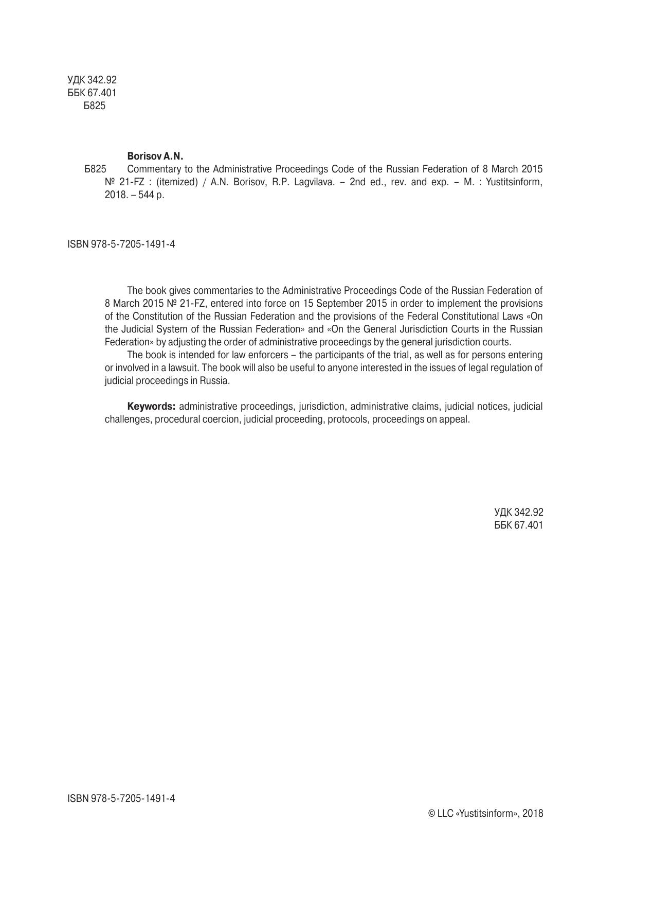 Книга предназначена для правоприменителей – участников судебного процесса, а также лиц, вступающих или вовлекаемых в судебный процесс. Книга будет полезна всем, кто интересуется вопросами правового регулирования судопроизводства в России