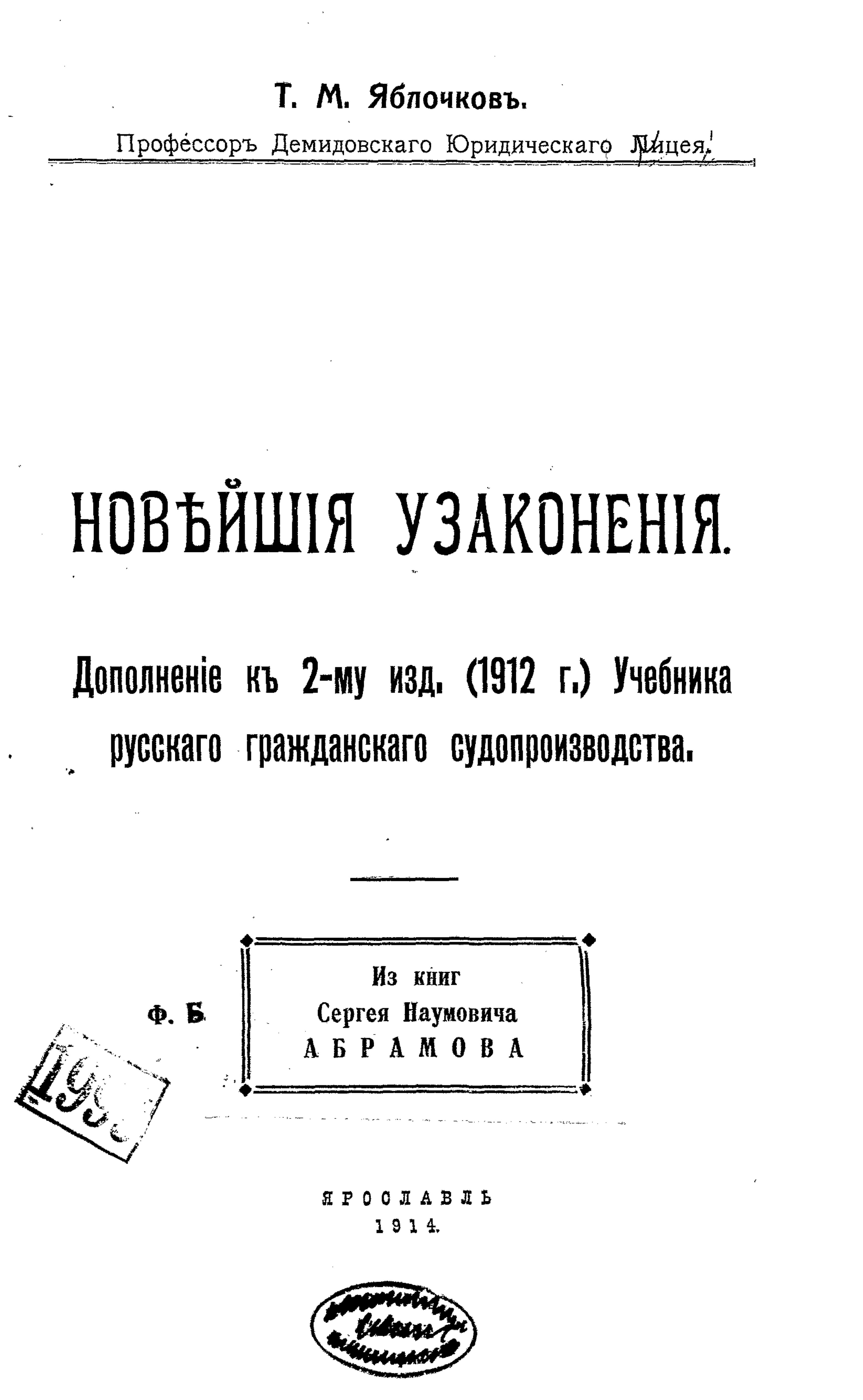 Новейшие узаконения (дополнение к изданию 2-му (1912 г.) Учебника русского гражданского судопроизводства (из книг С. Н. Абрамова)