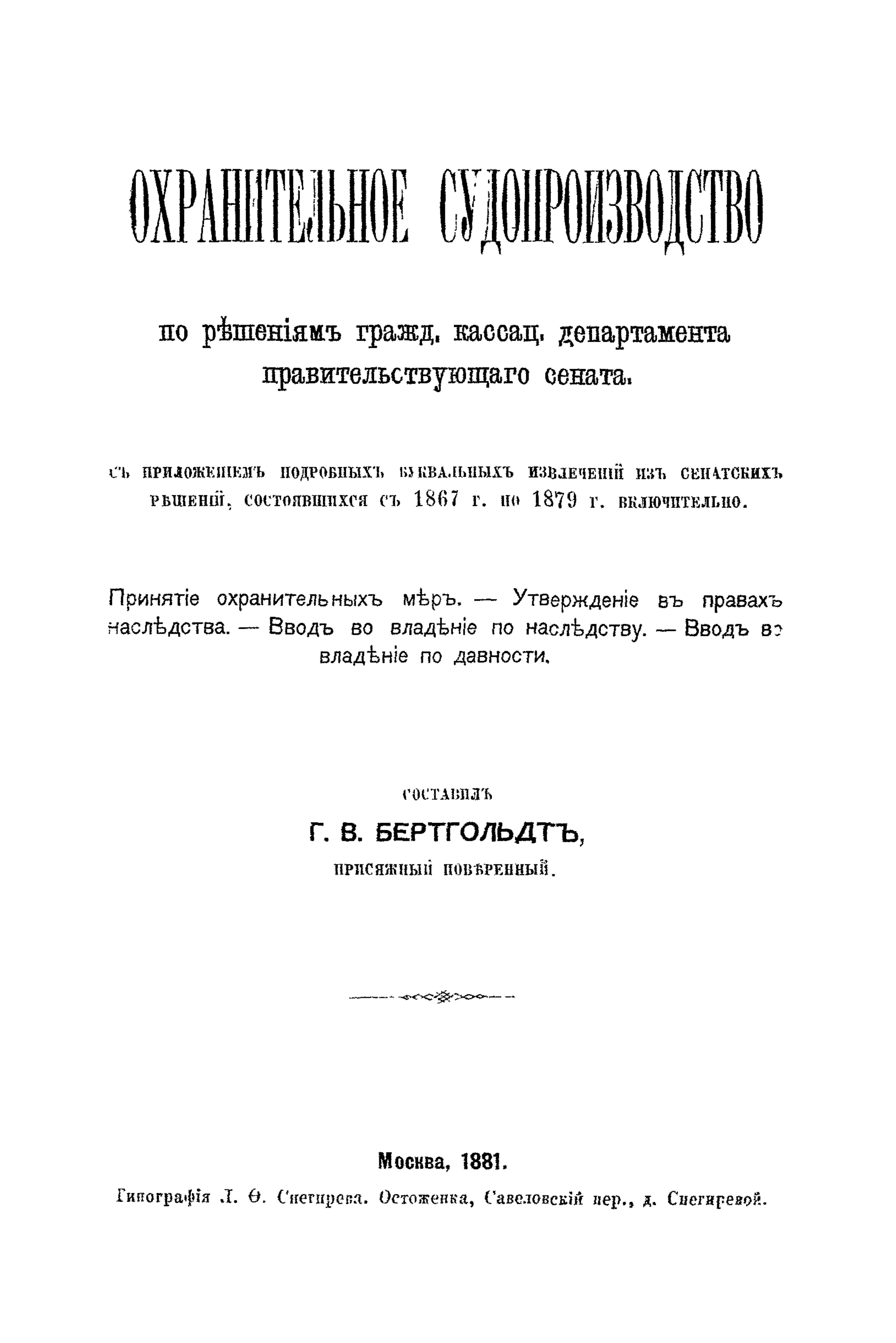Охранительное судопроизводство по решениям гражданского кассационного департамента Правительствующего Сената
