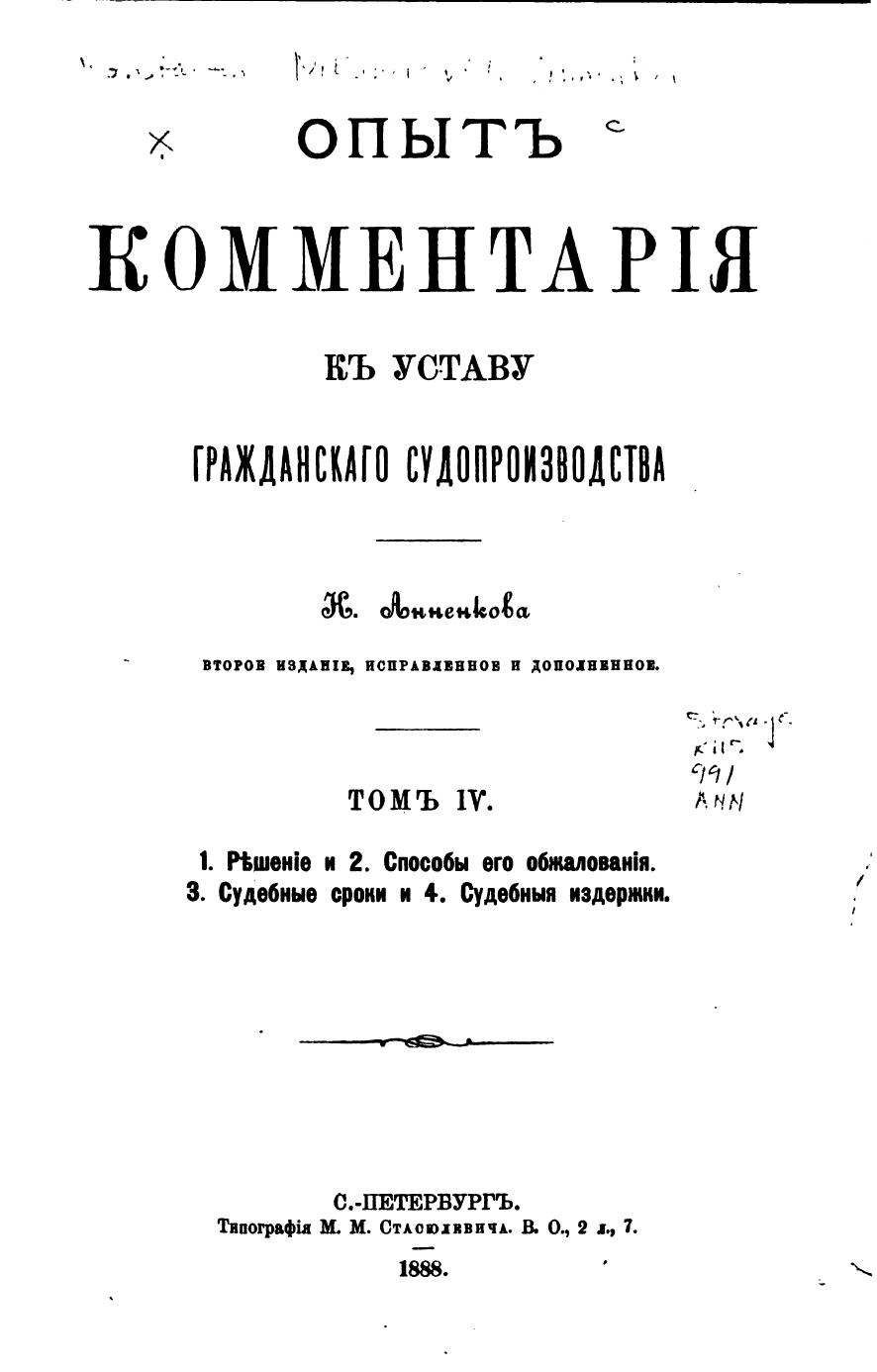 Опыт комментария к Уставу гражданского судопроизводства. Том 4