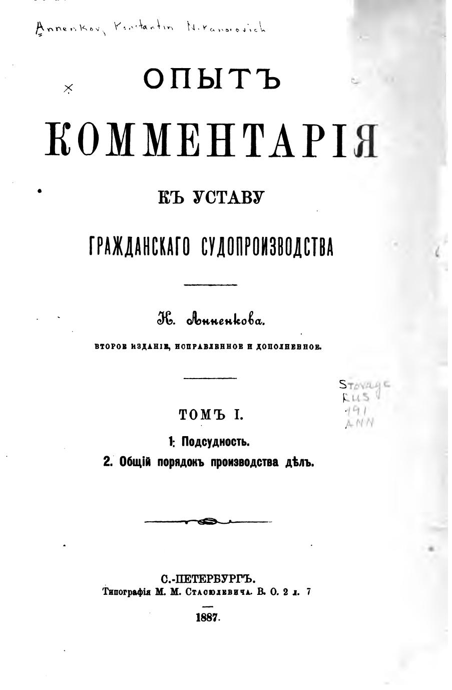 Опыт комментария к Уставу гражданского судопроизводства. Том 1
