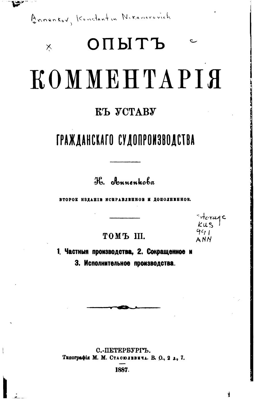 Опыт комментария к Уставу гражданского судопроизводства. Том 3