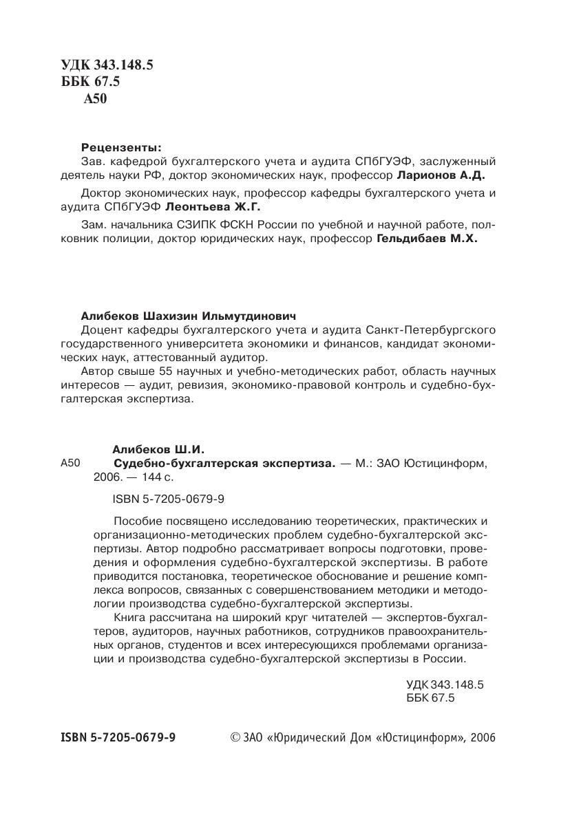 Пособие посвящено исследованию теоретических, практических и организационно-методических проблем судебно-бухгалтерской экспертизы. Автор подробно рассматривает вопросы подготовки, проведения и оформления судебно-бухгалтерской экспертизы. В работе приводится постановка, теоретическое обоснование и решение комплекса вопросов, связанных с совершенствованием методики и методологии производства судебно-бухгалтерской экспертизы.Книга рассчитана на широкий круг читателей — экспертов-бухгалтеров, аудиторов, научных работников, сотрудников правоохранительных органов, студентов и всех интересующихся проблемами организации и производства судебно-бухгалтерской экспертизы в России.