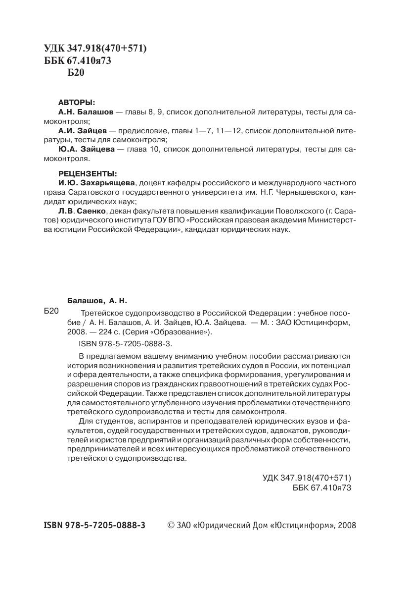 В предлагаемом вашему вниманию учебном пособии рассматриваются история возникновения и развития третейских судов в России, их потенциал и сфера деятельности, а также специфика формирования, урегулирования и разрешения споров из гражданских правоотношений в третейских судах Российской Федерации. Также представлен список дополнительной литературы для самостоятельного углубленного изучения проблематики отечественного третейского судопроизводства и тесты для самоконтроля. Для студентов, аспирантов и преподавателей юридических вузов и факультетов, судей государственных и третейских судов, адвокатов, руководителей и юристов предприятий и организаций различных форм собственности, предпринимателей и всех интересующихся проблематикой отечественного третейского судопроизводства.