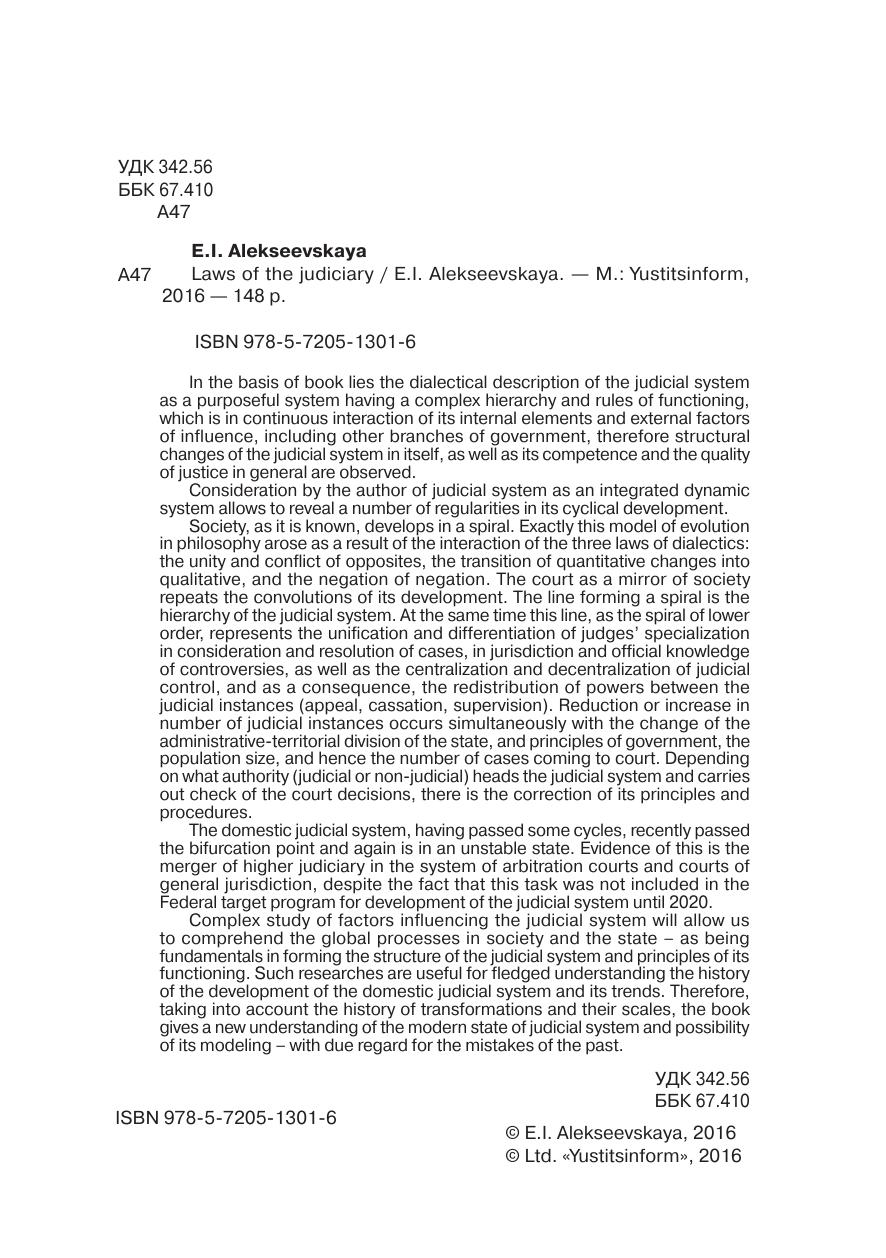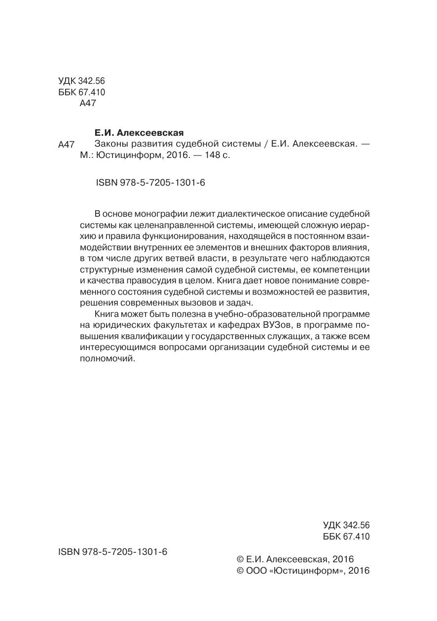 В основе монографии лежит диалектическое описание судебной системы как целенаправленной системы, имеющей сложную иерархию и правила функционирования, находящейся в постоянном взаимодействии внутренних ее элементов и внешних факторов влияния, в том числе других ветвей власти, в результате чего наблюдаются структурные изменения самой судебной системы, ее компетенции и качества правосудия в целом. Книга дает новое понимание современного состояния судебной системы и возможностей ее развития, решения современных вызовов и задач.