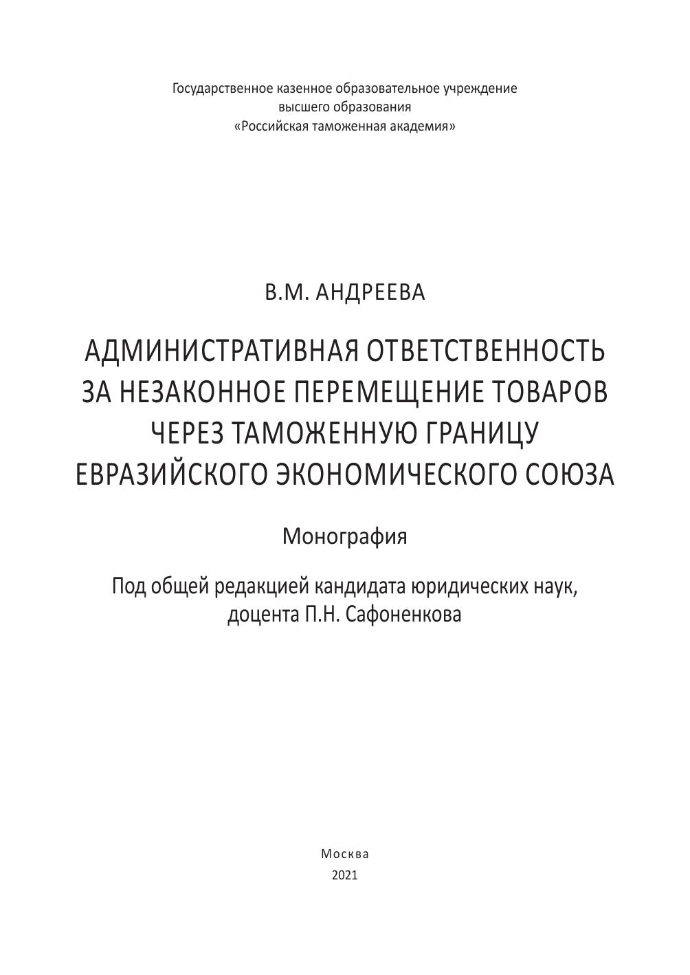Административная ответственность за незаконное перемещение товаров через таможенную границу Евразийского экономического союза