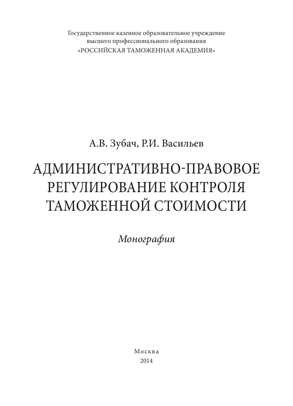 Административно-правовое регулирование контроля таможенной стоимости: монография