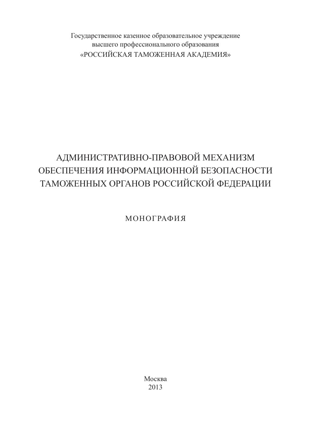 Административно-правовой механизм обеспечения информационной безопасности таможенных органов Российской Федерации: монография