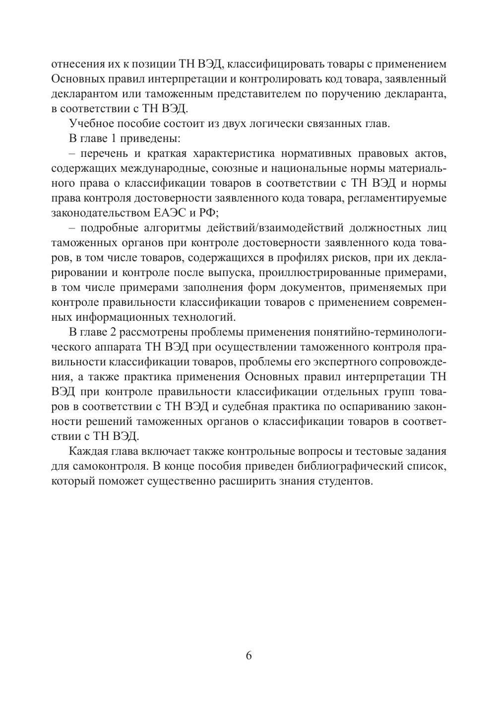 В учебном пособии отражены основные теоретические аспекты и требования нормативных правовых актов по контролю правильности классификации товаров в таможенных целях, подробно рассмотрен алгоритм действий должностных лиц таможенных органов, осуществляющих такой контроль, в том числе с применением современных информационных технологий, отражены проблемы применения понятийно-терминологического аппарата ТН ВЭД, О сновных правил интерпретации ТН ВЭД при осуществлении