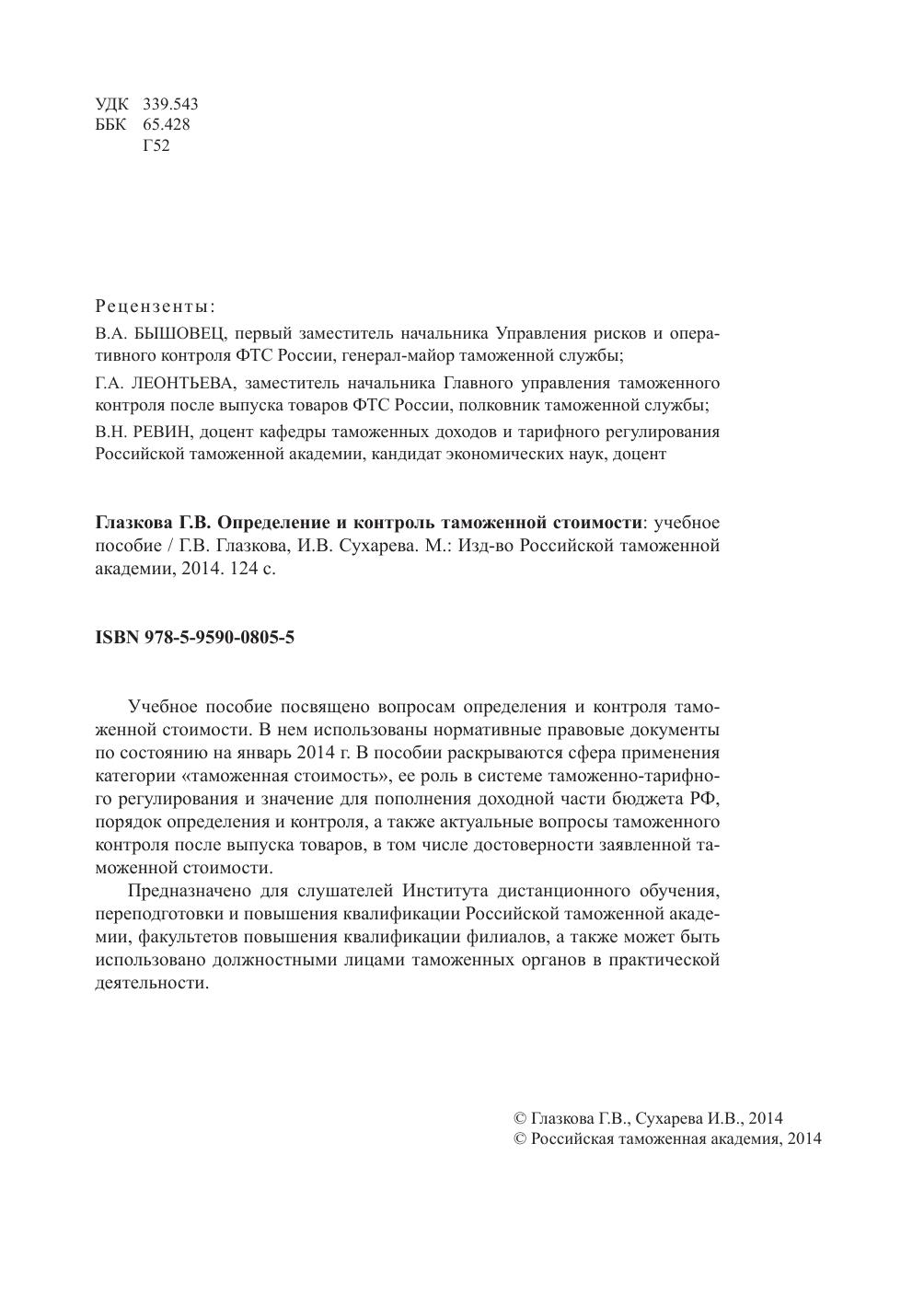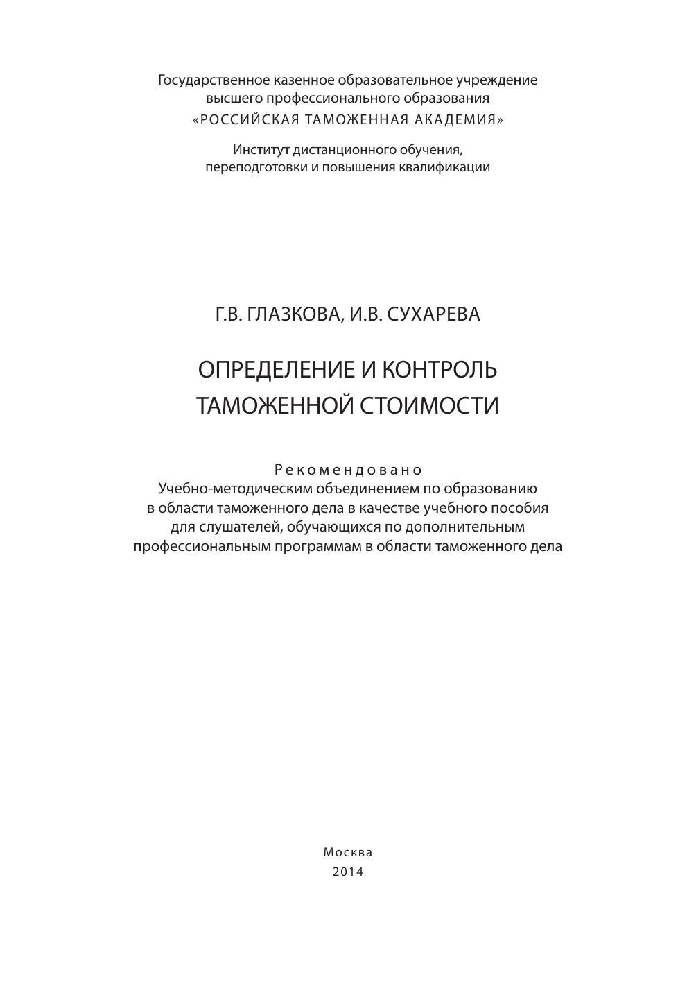 Учебное пособие посвящено вопросам определения и контроля таможенной стоимости. В нем использованы нормативные правовые документы по состоянию на январь 2014 г. В пособии раскрываются сфера применения категории «таможенная стоимость», ее роль в системе таможенно-тарифного регулирования и значение для пополнения доходной части бюджета РФ, порядок определения и контроля, а также актуальные вопросы таможенного контроля после выпуска товаров, в том числе достоверности заявленной таможенной стоимости. Предназначено для слушателей Института дистанционного обучения, переподготовки и повышения квалификации Российской таможенной академии, факультетов повышения квалификации филиалов, а также может быть использовано должностными лицами таможенных органов в практической деятельности.