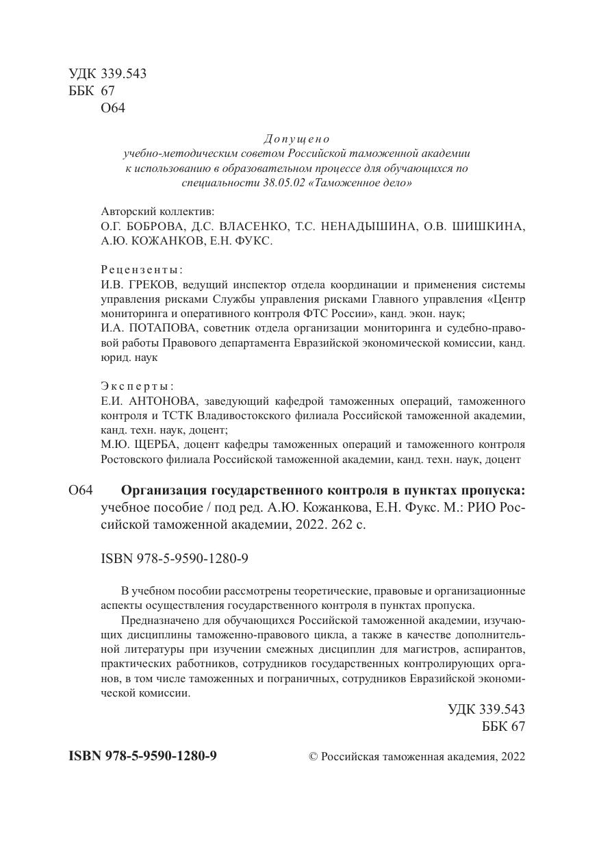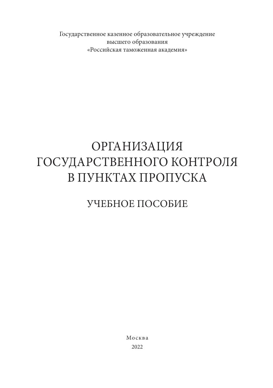 В учебном пособии рассмотрены теоретические, правовые и организационные аспекты осуществления государственного контроля в пунктах пропуска.