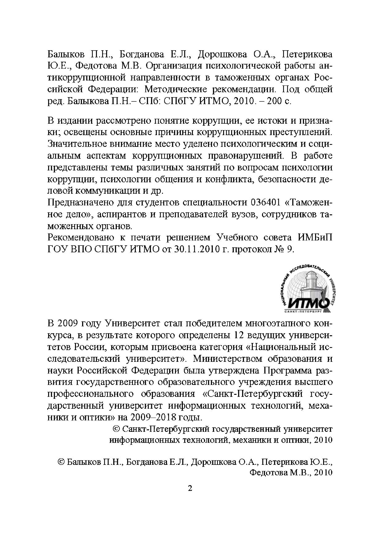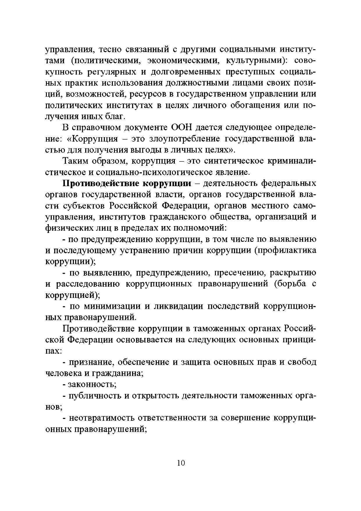 В издании рассмотрено понятие коррупции, ее истоки и признаки освещены основные причины коррупционных преступлений. Значительное внимание место уделено психологическим и социальным аспектам коррупционных правонарушений. В работе представлены темы различных занятий по вопросам психологии коррупции, психологии общения и конфликта, безопасности деловой коммуникации и др. Предназначено для студентов специальности 036401 «Таможенное дело», аспирантов и преподавателей вузов, сотрудников таможенных органов.