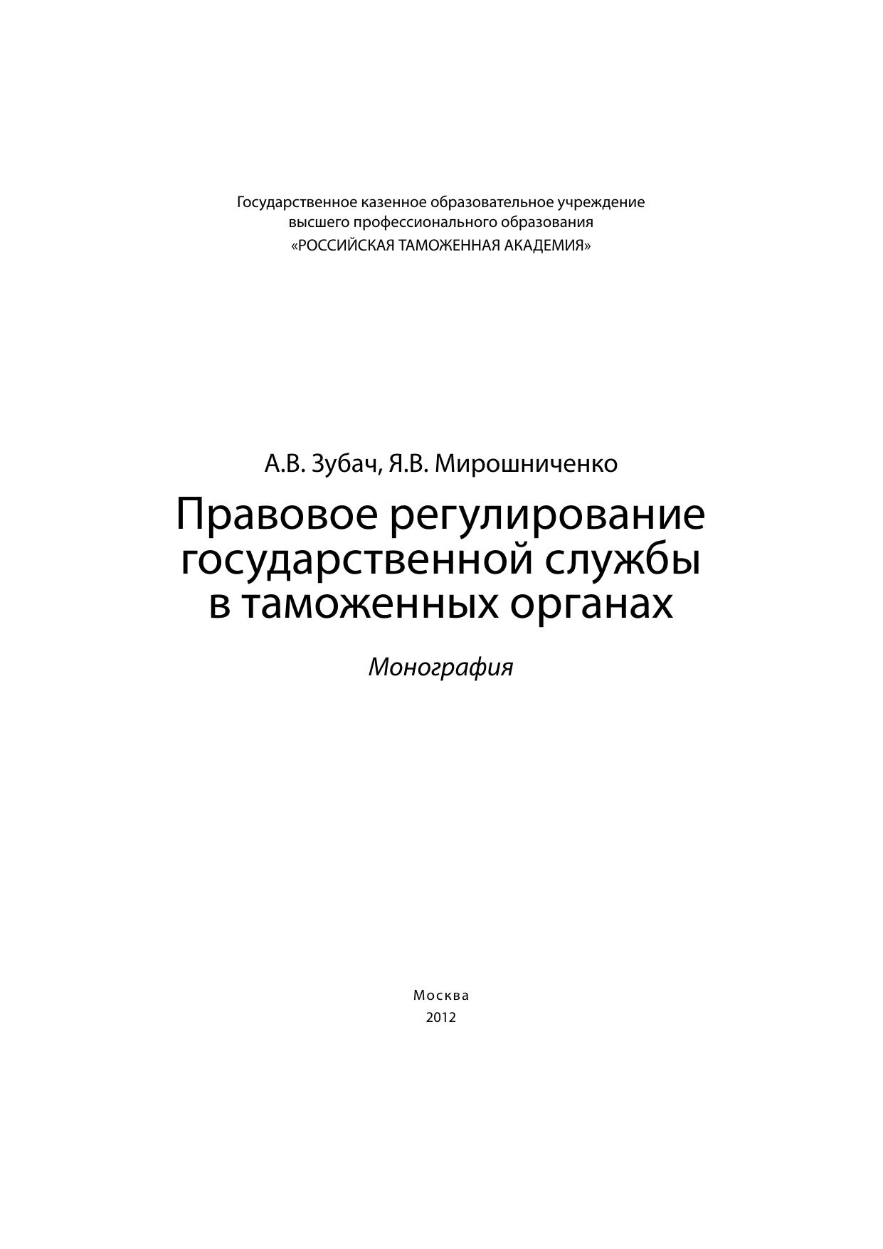 Правовое регулирование государственной службы в таможенных органах: монография