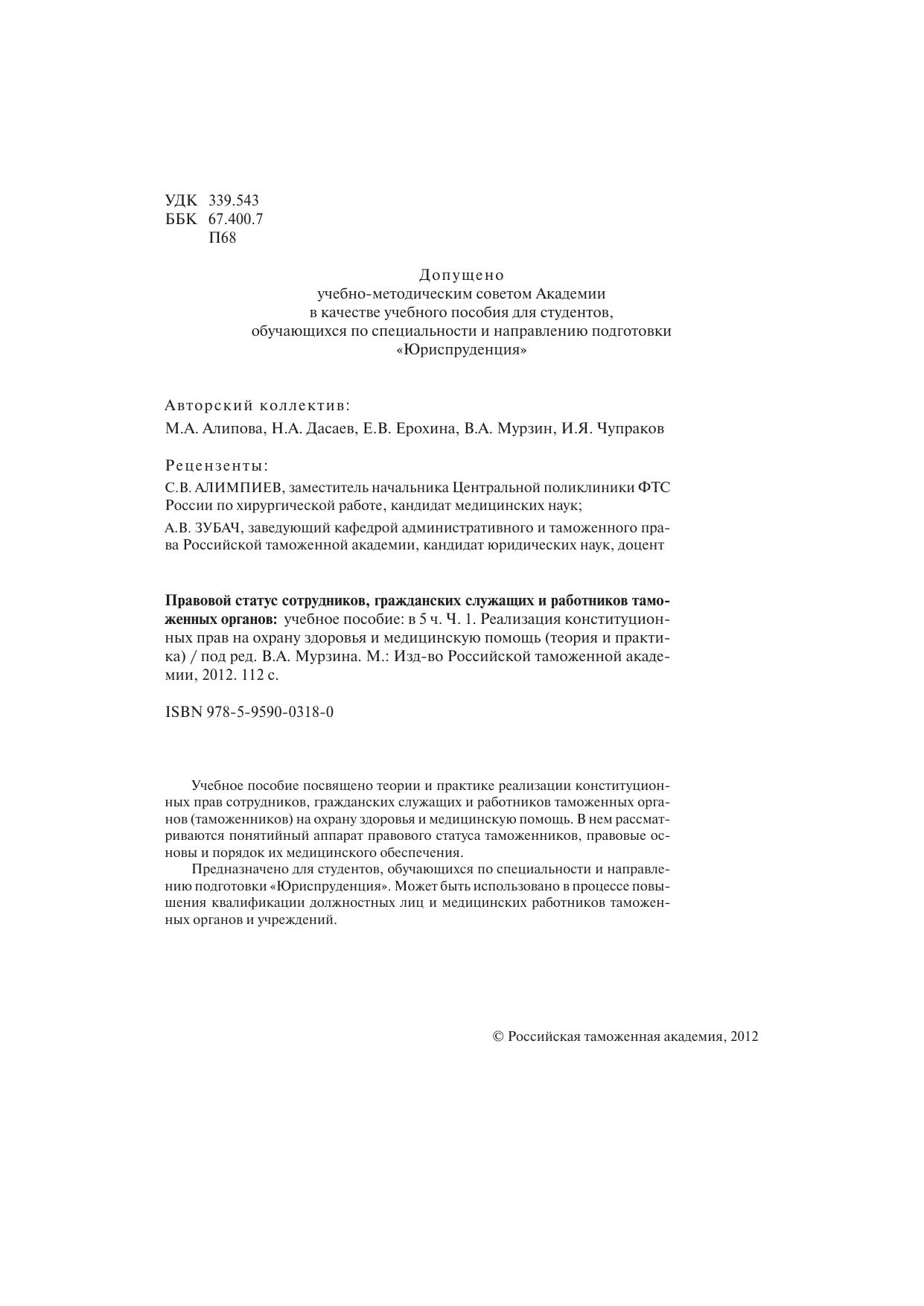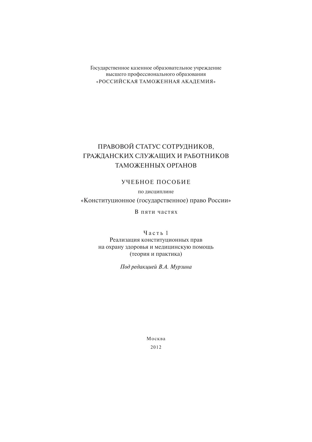 Правовой статус сотрудников, гражданских служащих и работников таможенных органов. Реализация конституционных прав на охрану здоровья и медицинскую помощь (теория и практика). Часть 1