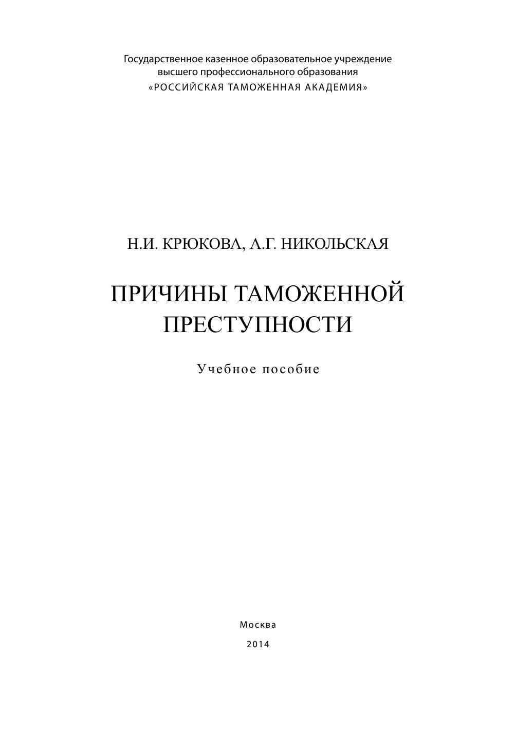 Причины таможенной преступности: учебное пособие