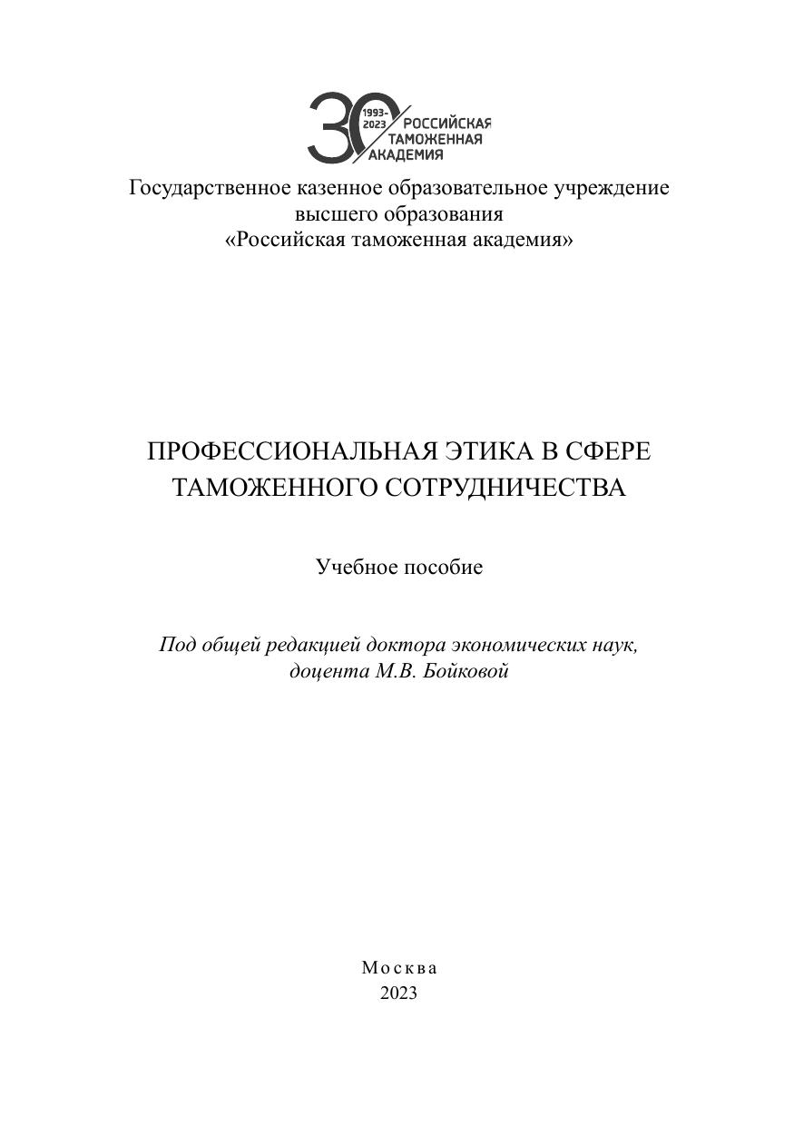 службы. Рассмотрены ключевые понятия и основы морально-нравственного поведения государственных служащих в сфере таможенного сотрудничества.