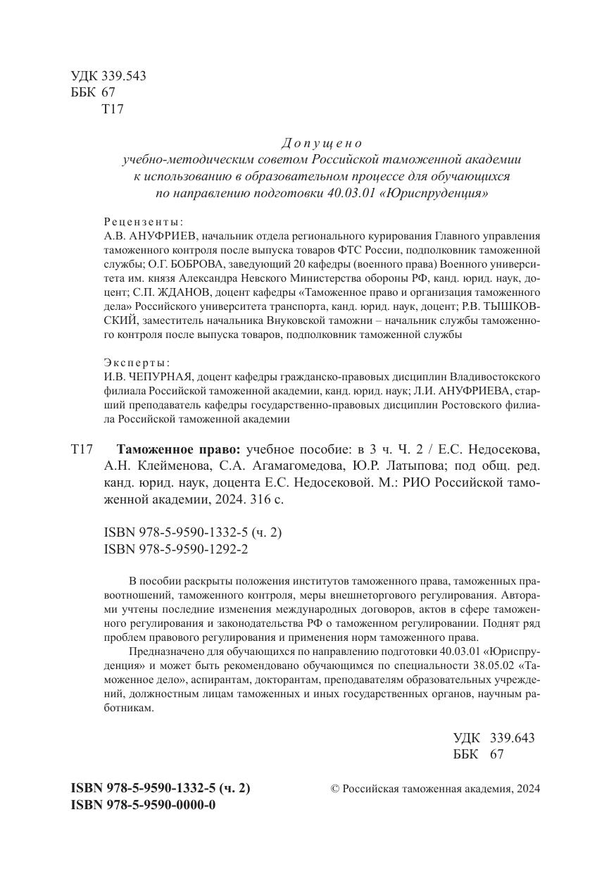 Предназначено для обучающихся по направлению подготовки 40.03.01 «Юриспруденция» и может быть рекомендовано обучающимся по специальности 38.05.02 «Таможенное дело», аспирантам, докторантам, преподавателям образовательных учреждений, должностным лицам таможенных и иных государственных органов, научным работникам.