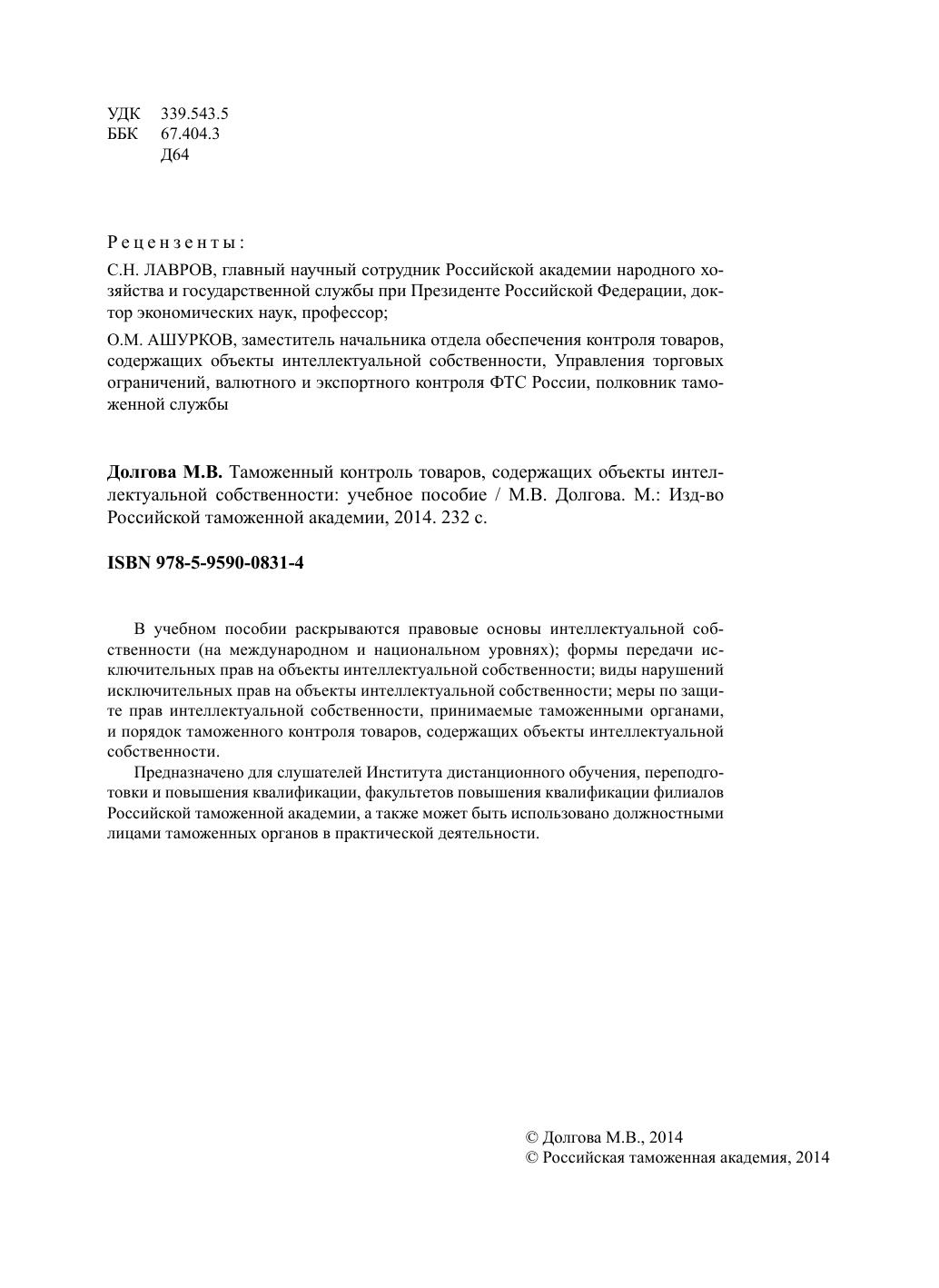 Гриф: Рекомендовано Учебно-методическим объединением высших учебных заведений Российской Федерации по образованию в области таможенного дела в качестве учебного пособия для слушателей, обучающихся по дополнительным профессиональным программам в области таможенного дела