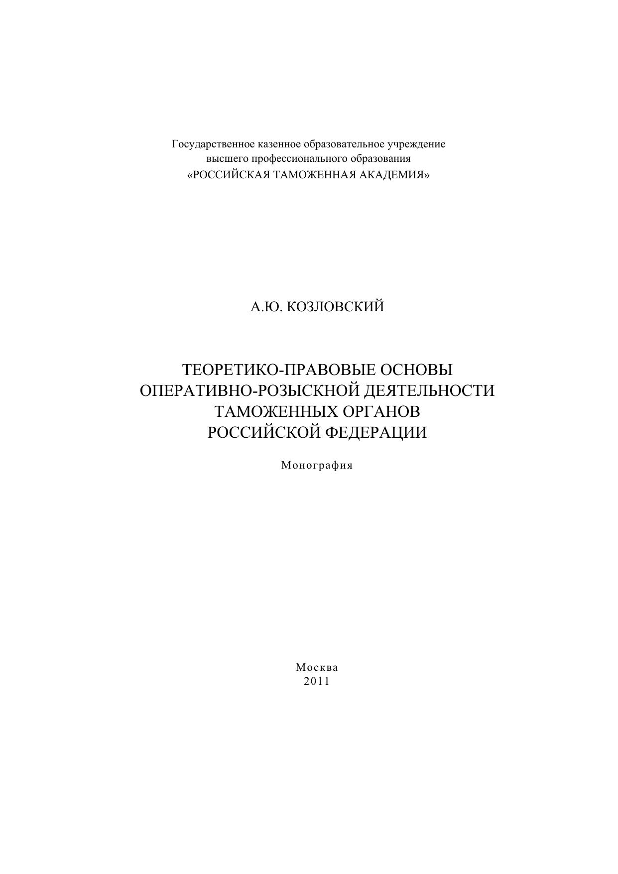 Теоретико-правовые основы оперативно-розыскной деятельности таможенных органов РФ: монография