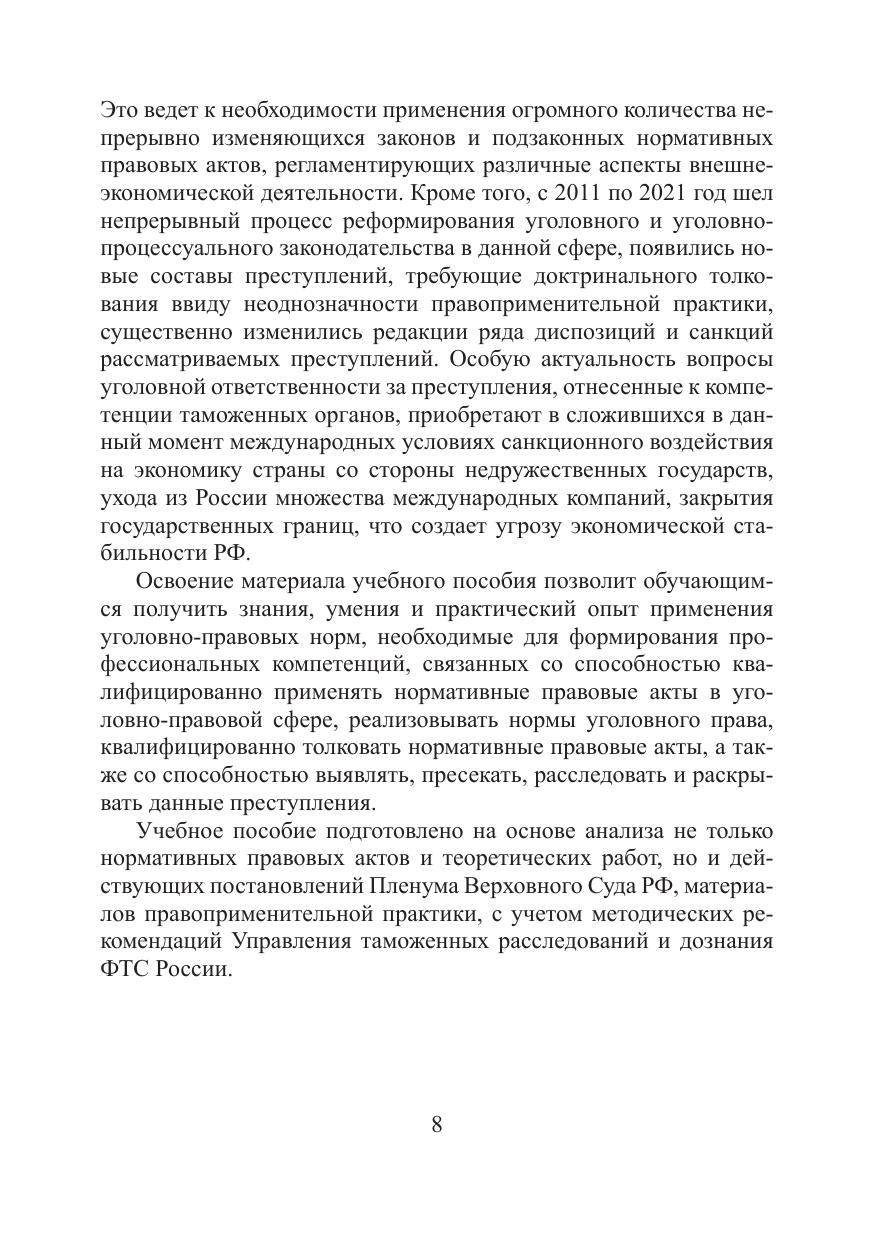Учебное пособие посвящено специальным вопросам квалификации преступлений, отнесенных к компетенции таможенных органов. В нем приведен подробный уголовно-правовой анализ составов преступлений, совершаемых в сфере таможенного дела (отнесенных к компетенции таможенных органов РФ как органов дознания), с учетом изменений уголовного и иного отраслевого законодательства, а также практики Верховного Суда РФ по состоянию на апрель 2022 года.