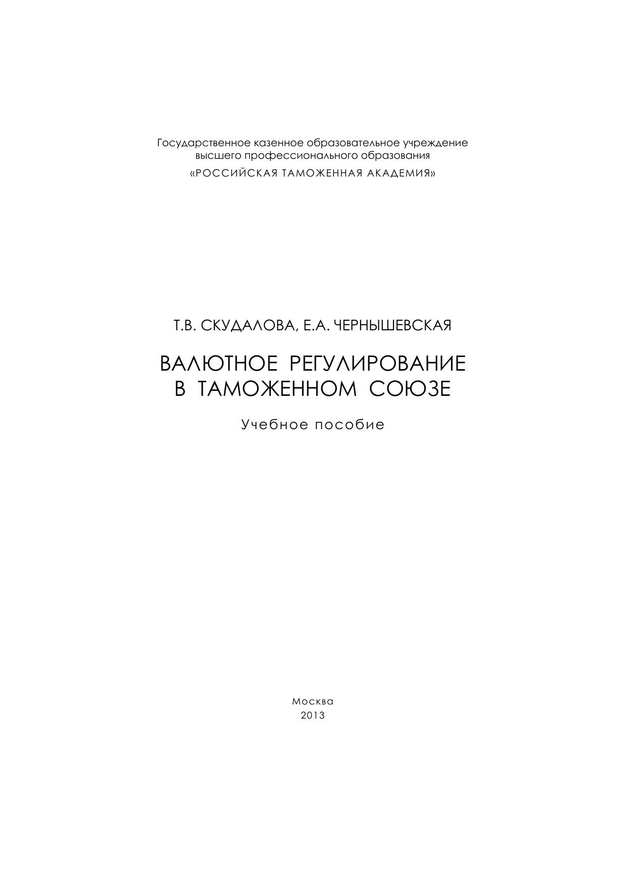 Валютное регулирование в Таможенном союзе: учебное пособие