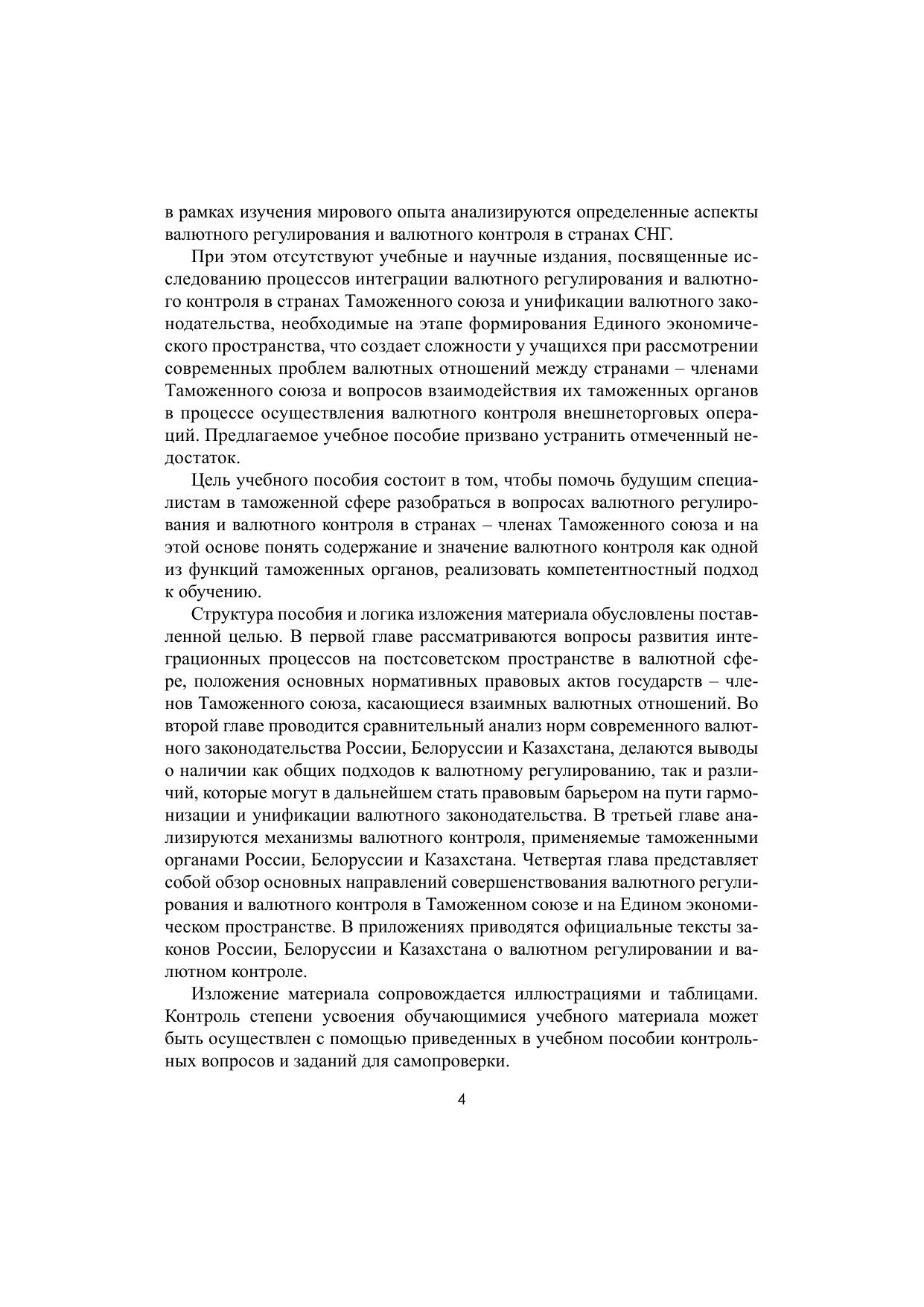 Учебное пособие подготовлено в соответствии с Государственным образовательным стандартом высшего профессионального образования по специальности 080115.65 «Таможенное дело» и Федеральным государственным образовательным стандартом высшего профессионального образования по направлению подготовки (специальности) 036401.65 «Таможенное дело» и нацелено на формирование профессиональной компетенции в сфере валютного регулирования и валютного контроля. В нем рассмотрены организационно-правовые и методические основы валютного регулирования и валютного контроля в странах Таможенного союза, выявлены существующие проблемы валютного регулирования и валютного контроля, обобщены предложения по развитию интеграционных процессов в валютной сфере на территории Единого экономического пространства. Предназначено для студентов факультета таможенного дела, а также для читателей, интересующихся проблемами государственного регулирования внешнеэкономической деятельности.