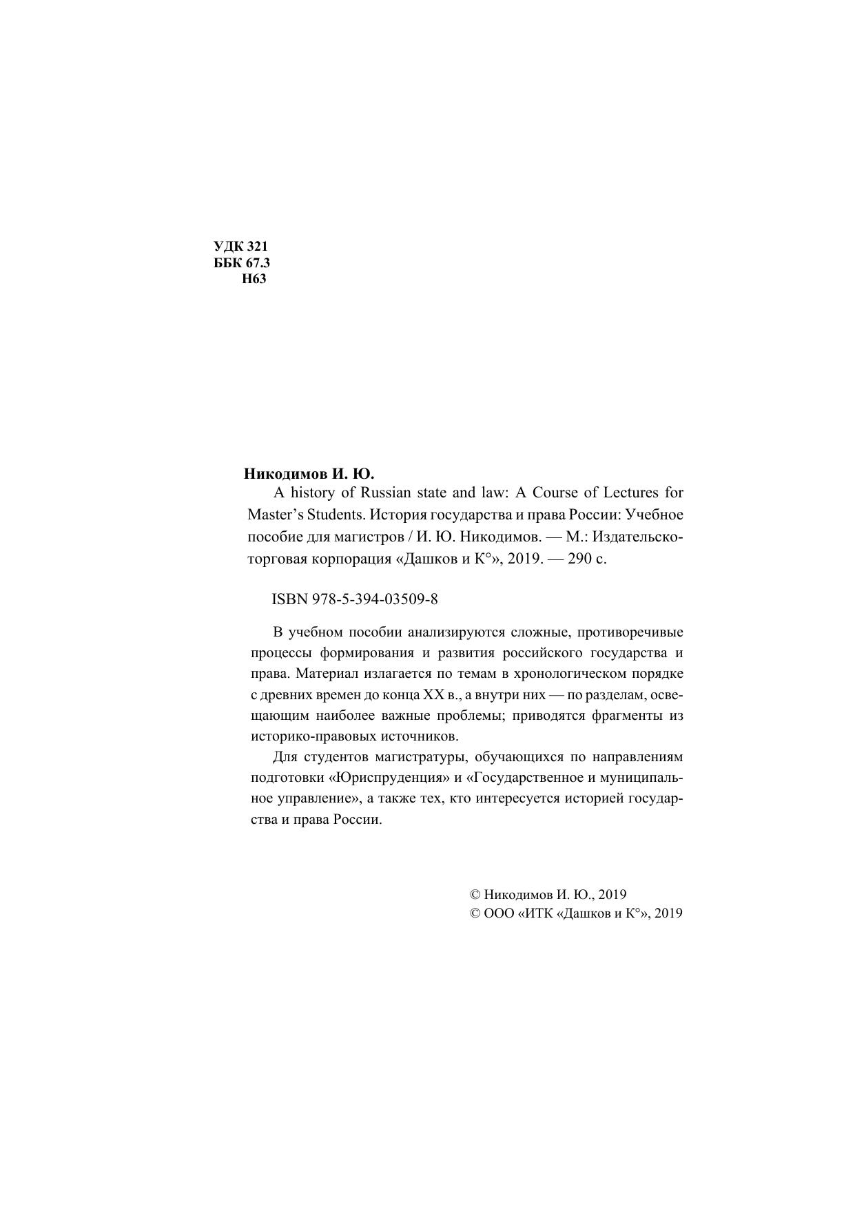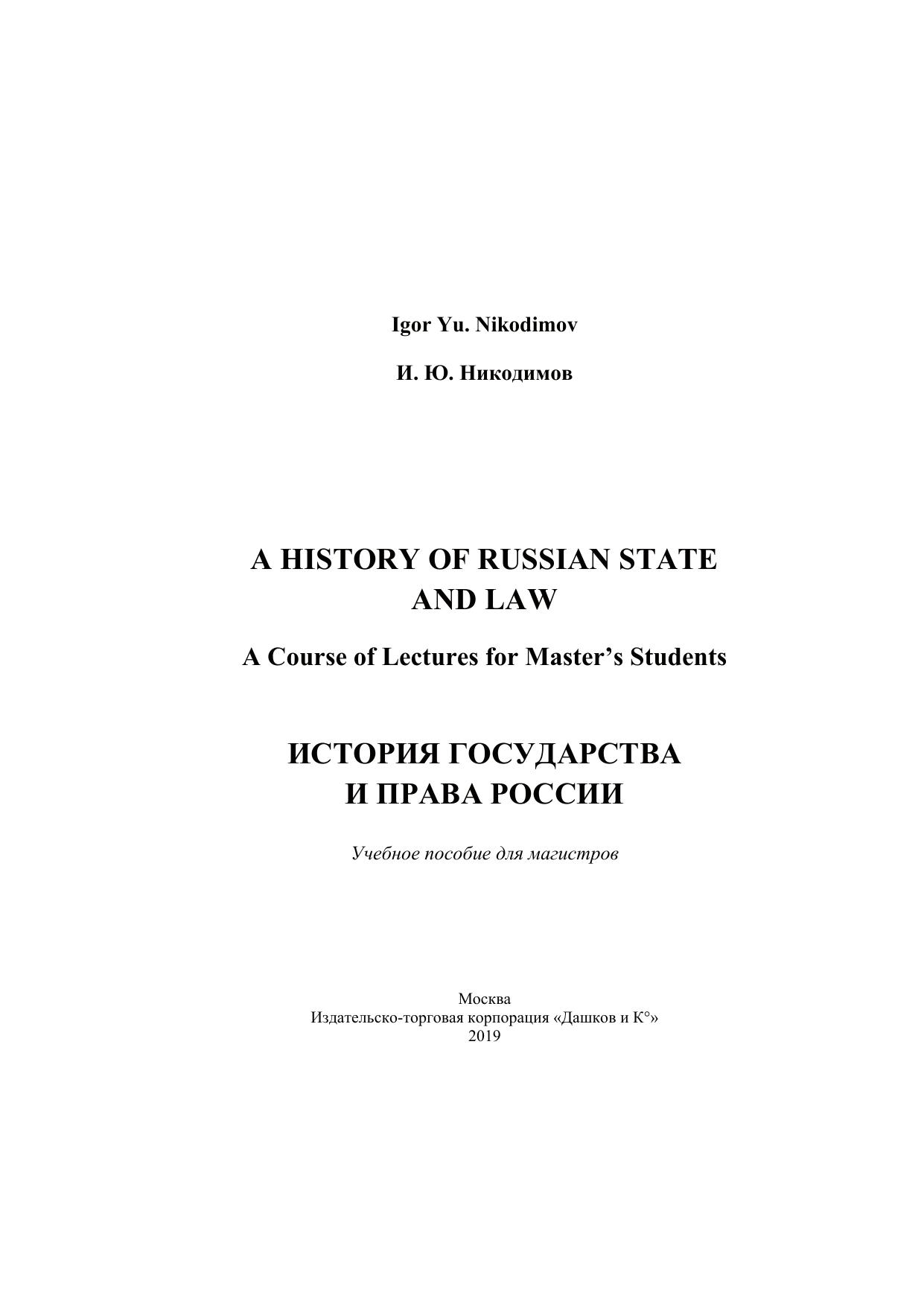A history of Russian state and law: A Course of Lectures for Master’s Students. История государства и права России