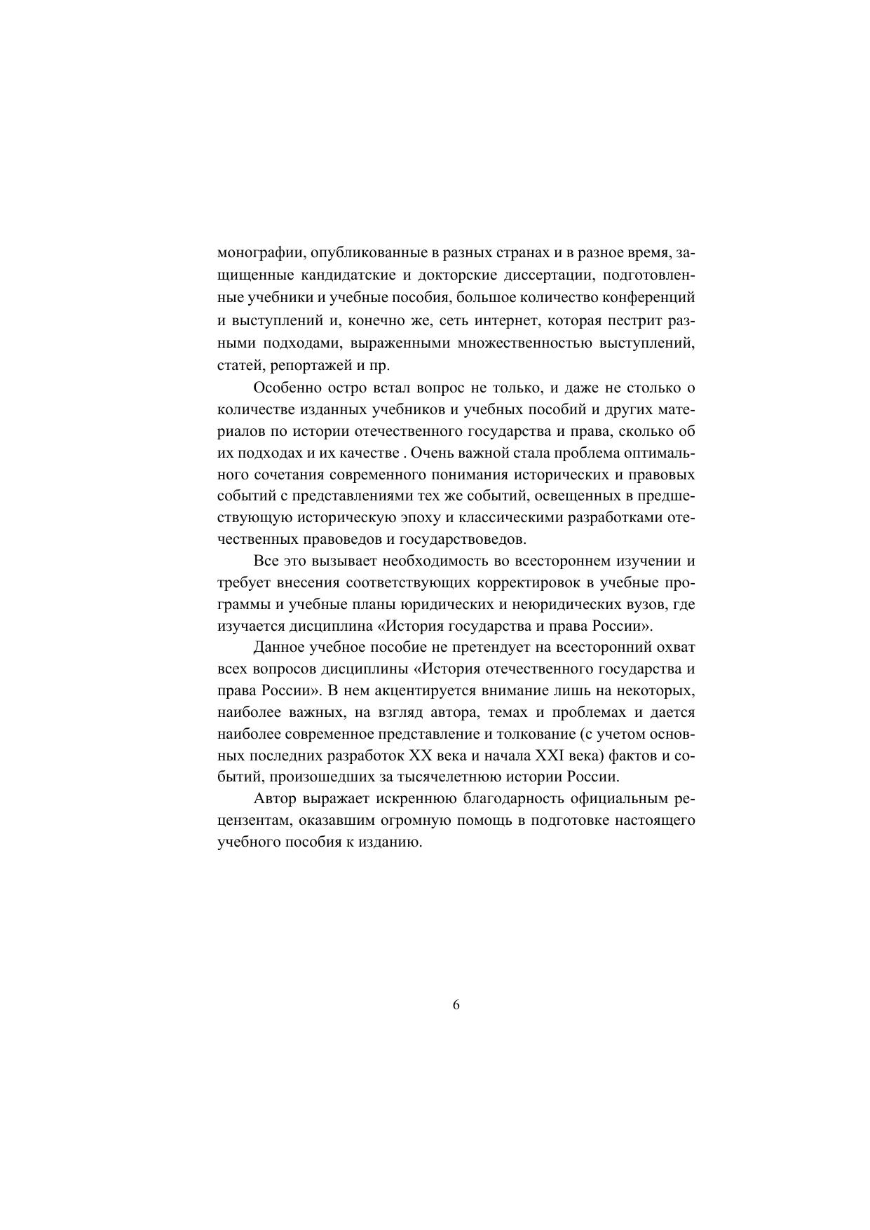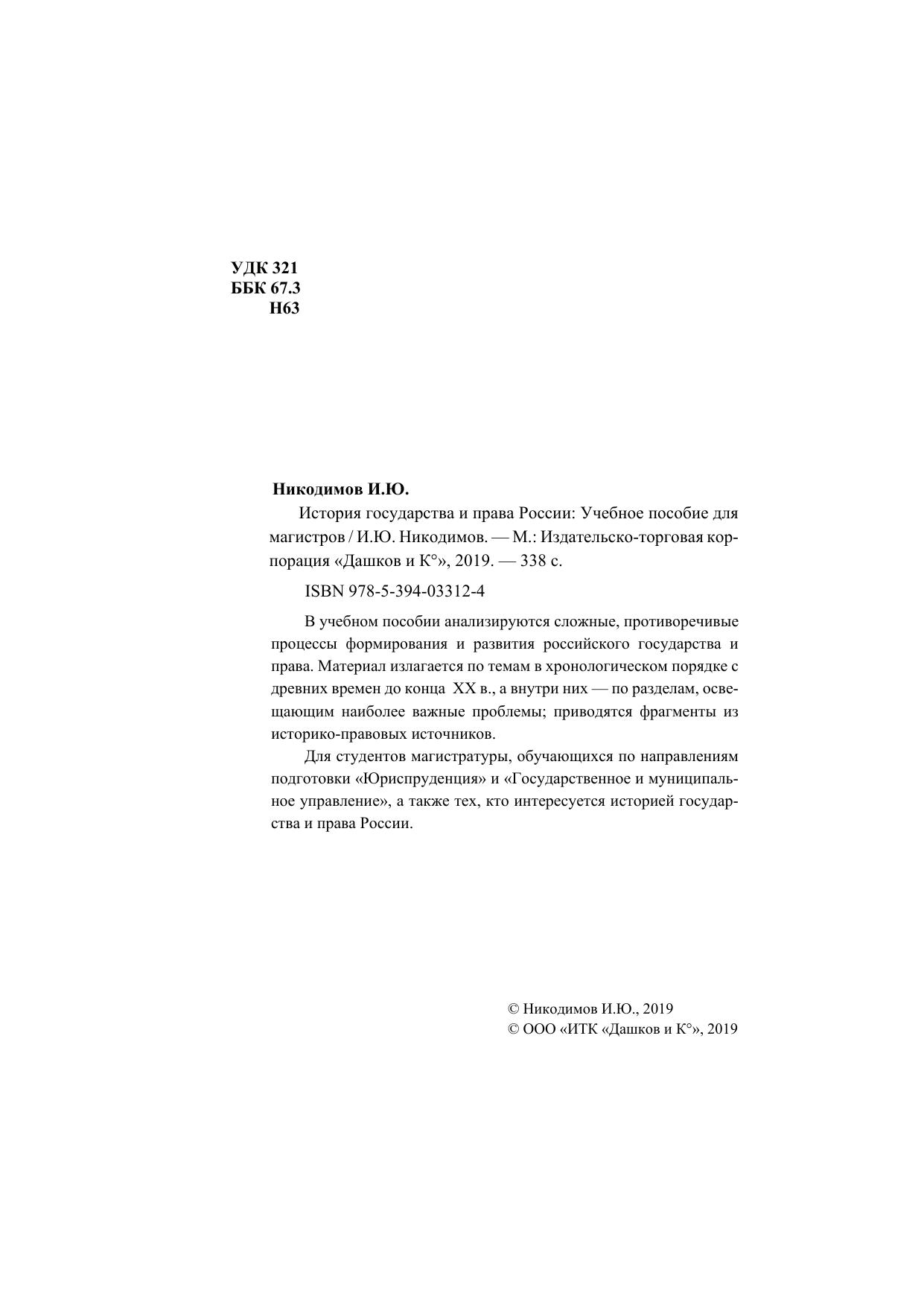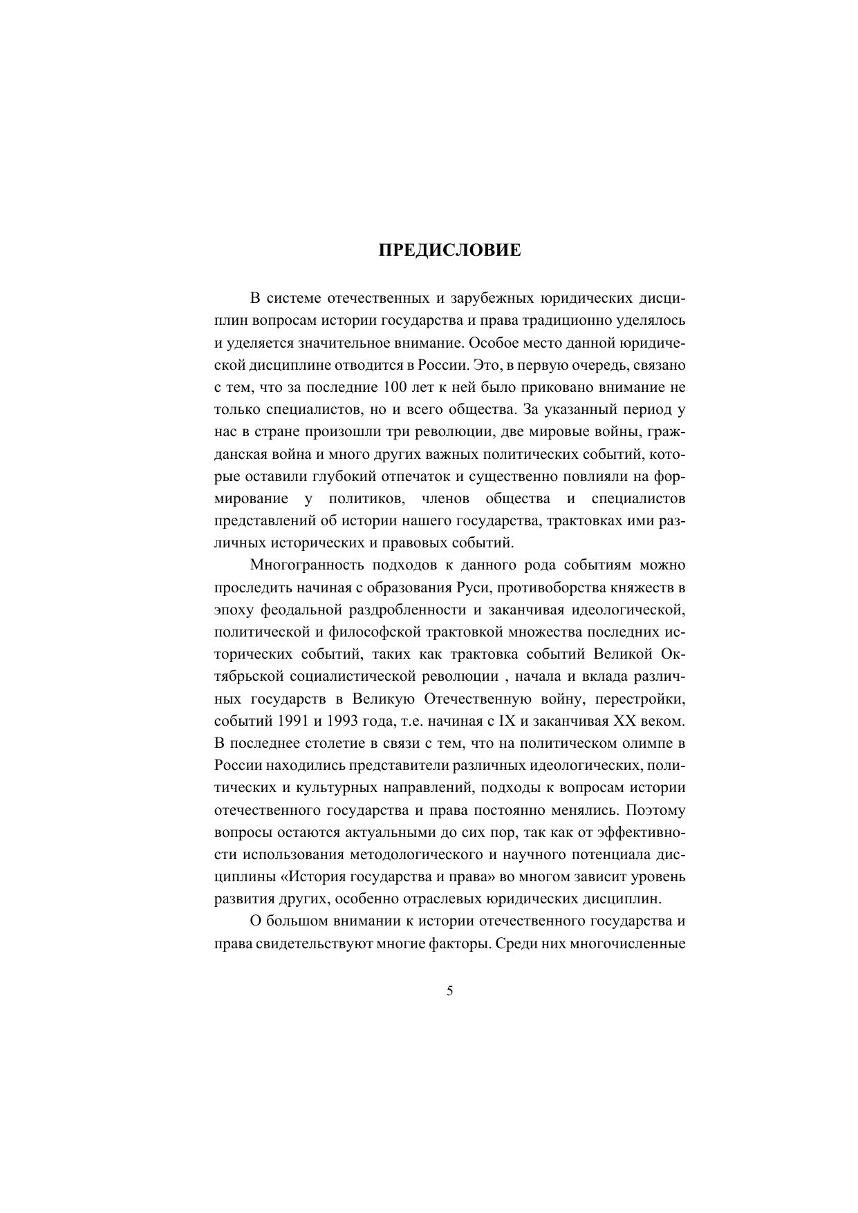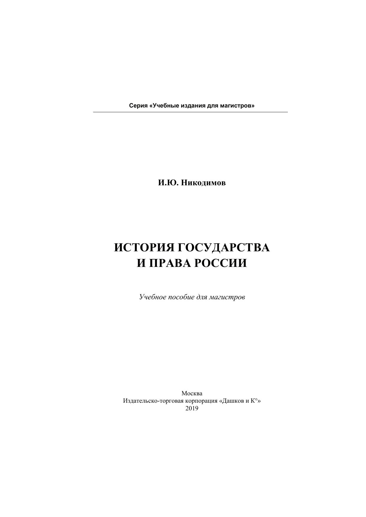 В учебном пособии анализируются сложные, противоречивые процессы формирования и развития российского государства и права. Материал излагается по темам в хронологическом порядке с древних времен до конца XX в., а внутри них - по разделам, освещающим наиболее важные проблемы; приводятся фрагменты из историко-правовых источников. Для студентов магистратуры, обучающихся по направлениям подготовки "Юриспруденция" и "Государственное и муниципальное управление", а также тех, кто интересуется историей государства и права России.