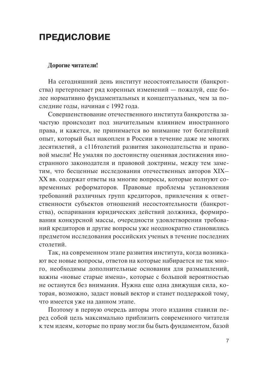 Настоящее издание представляет собой результат комплексного исследования с целью выявления трудов по несостоятельности (банкротству), относящихся к дореволюционному периоду. На современном этапе развития института несостоятельности (банкротства), когда возникают все новые вопросы в сфере законодательного регулирования и практики правоприменения, необходимы дополнительные основания для размышлений, важны «новые старые» имена, которые с большой вероятностью не останутся без внимания. В силу необходимости обращения к частным мнениям авторов акцент сделан на периодике. Данное издание будет интересно как тем, кто уже многие годы проводит исследования в сфере несостоятельности (банкротства), так и тем, кто только имеет желание ступить на тропу неординарного и интригующего «конкурсного» процесса.
