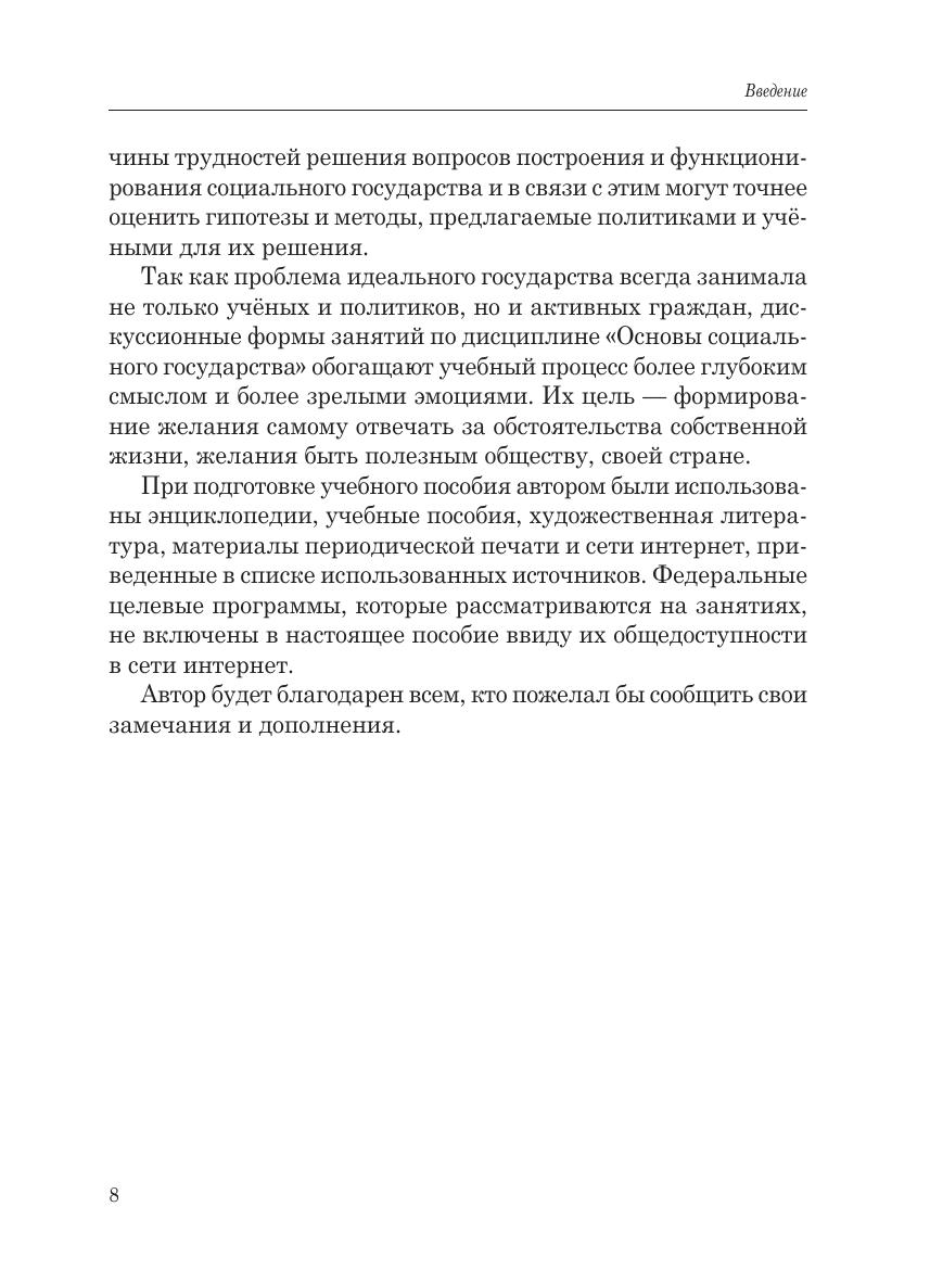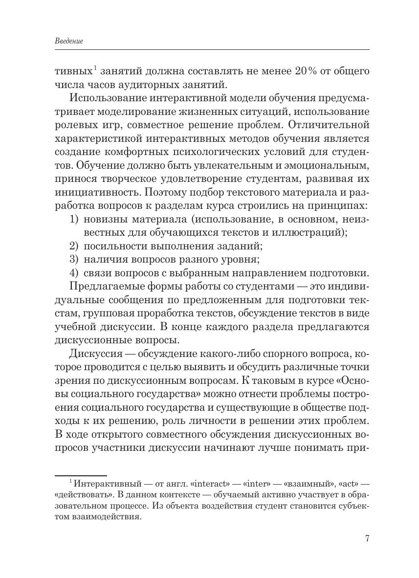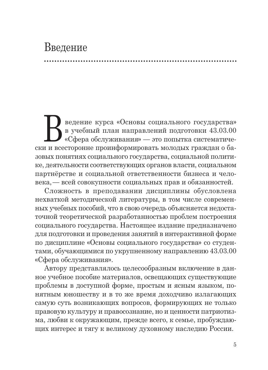 Учебное пособие предназначено для самостоятельной подготовки к интерактивным практическим занятиям по дисциплине «Основы социального государства» студентов направлений подготовки, относящихся к укрупнённой группе 43.03.00 «Сфера обслуживания». Оно может быть полезно преподавателям высших, средних и средних специальных учебных заведений для организации дискуссионных занятий, слушателям курсов повышения педагогической квалификации, а также всем интересующимся проблемами построения социального государства.