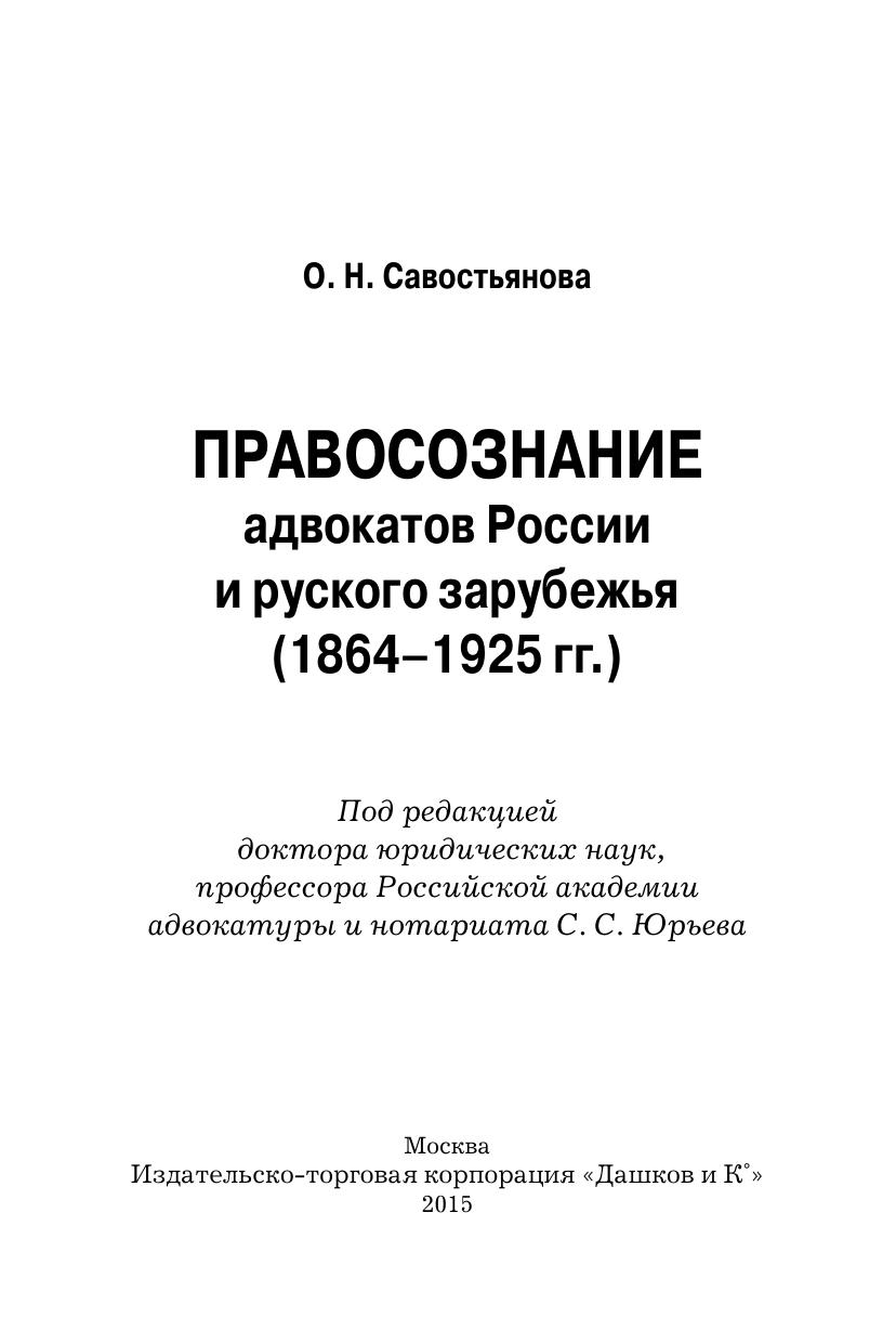 Правосознание адвокатов России и русского зарубежья (1864-1925 гг.): Монография