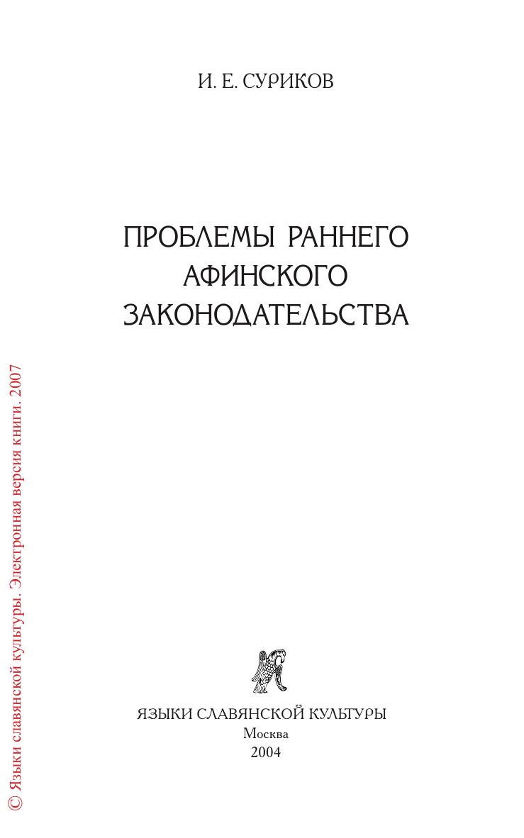 В книге рассматривается ряд вопросов, связанных со становлением законодательства и права в архаических Афинах, с созданием в одном из крупнейших древнегреческих полисов первых сводов письменных законов (VII–VI вв. до н.э.). Имена творцов этих сводов – Драконта и Солона – известны многим, однако исследование их деятельности всегда оказывается сопряжено со значительными трудностями. Причиной тому – и неудовлетворительное состояние источников, и слабая на сегодняшний день степень изученности общего исторического контекста столь ранней эпохи развития античного мира. Наибольшее внимание автора привлекает религиозный аспект раннего законодательства, которому уделялось особенно незначительное внимание в предшествующей историографии. Попутно рассматривается специфика самого феномена древнегреческого права, во многих своих чертах разительно расходящегося с нашими современными представлениями о правовых системах и комплексах. Книга предназначена для специалистов – историков и юристов, для всех, интересующихся культурой и обществом античности.