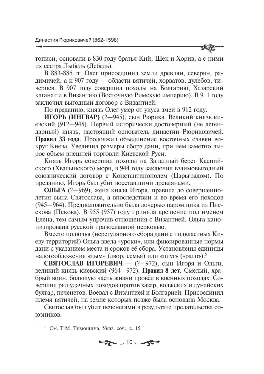 Данная книга представляет собой краткое описание российской исто рии через биографии государей, правивших с IX до XX века. Новгородские, киевские, владимиро-суздальские, московские, тверские князья, рос сийские цари и императоры от Рюрика до Николая II расположены здесь в хронологической последовательности. Некоторым из этих персонажей посвящено всего несколько строчек, история других российских правите лей излагается весьма подробно.
