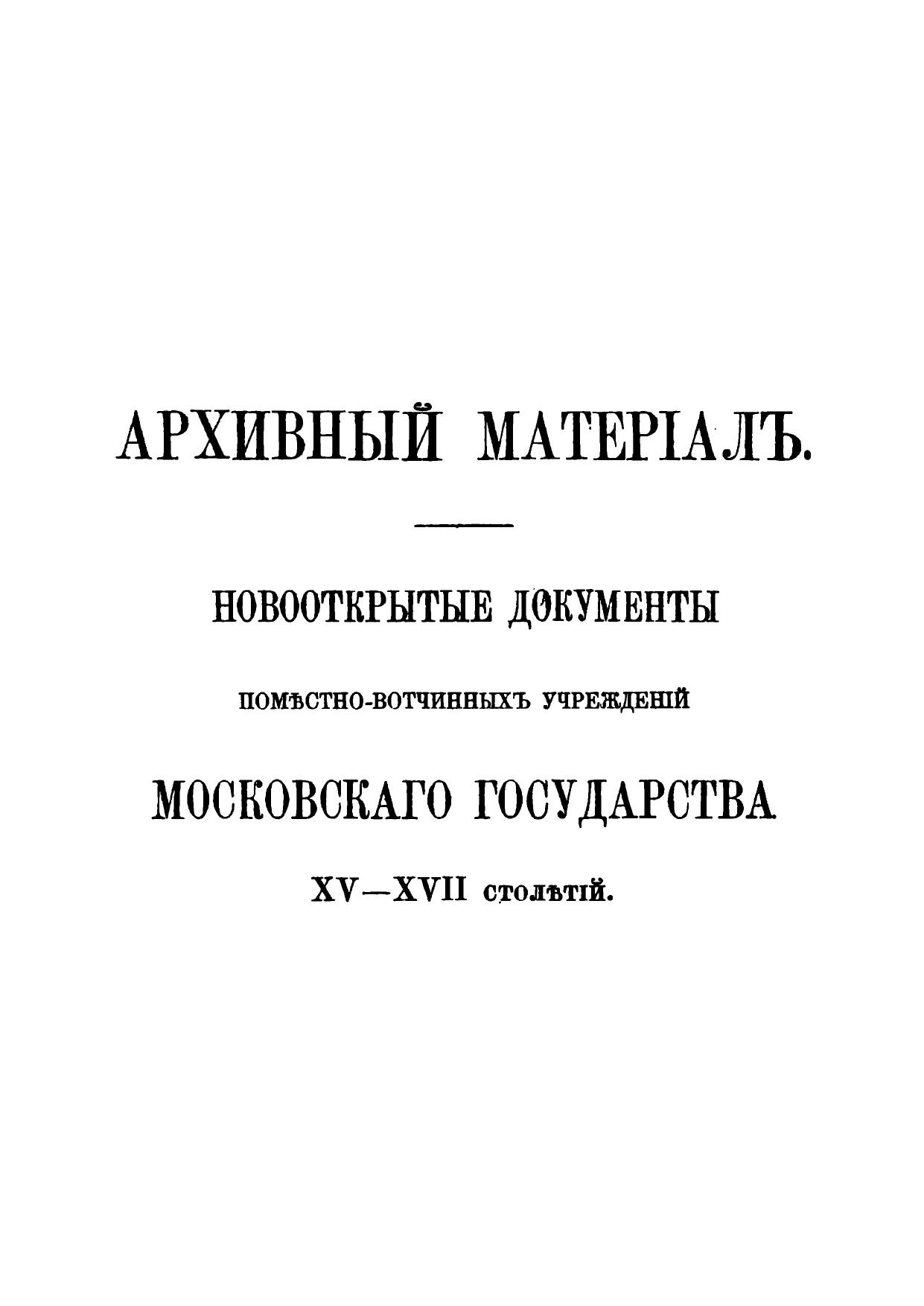 Архивный материал. Новооткрытые документы поместно-вотчинных учреждений Московского государства XV-XVII столетий