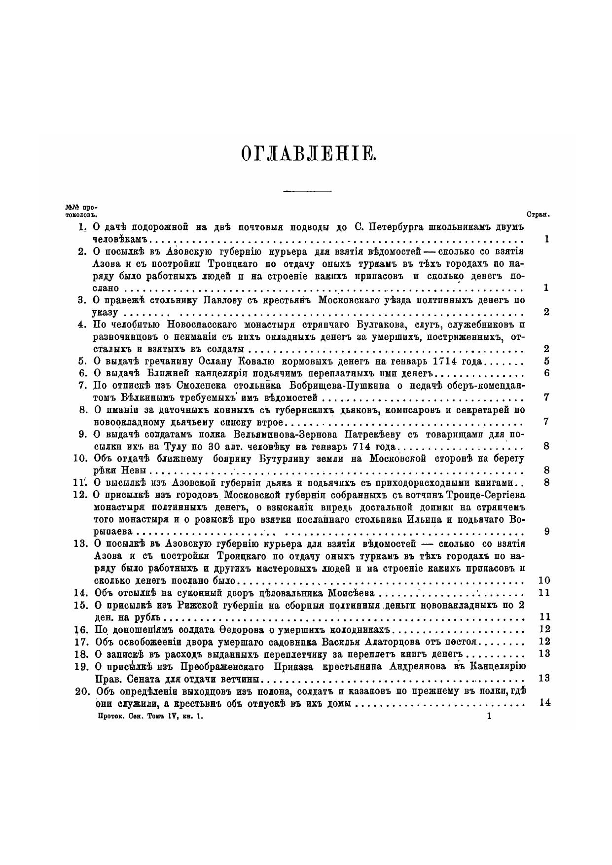 Доклады и приговоры, состоявшиеся в Правительствующим Сенате в царствование Петра Великого. Том 4. Книга 1