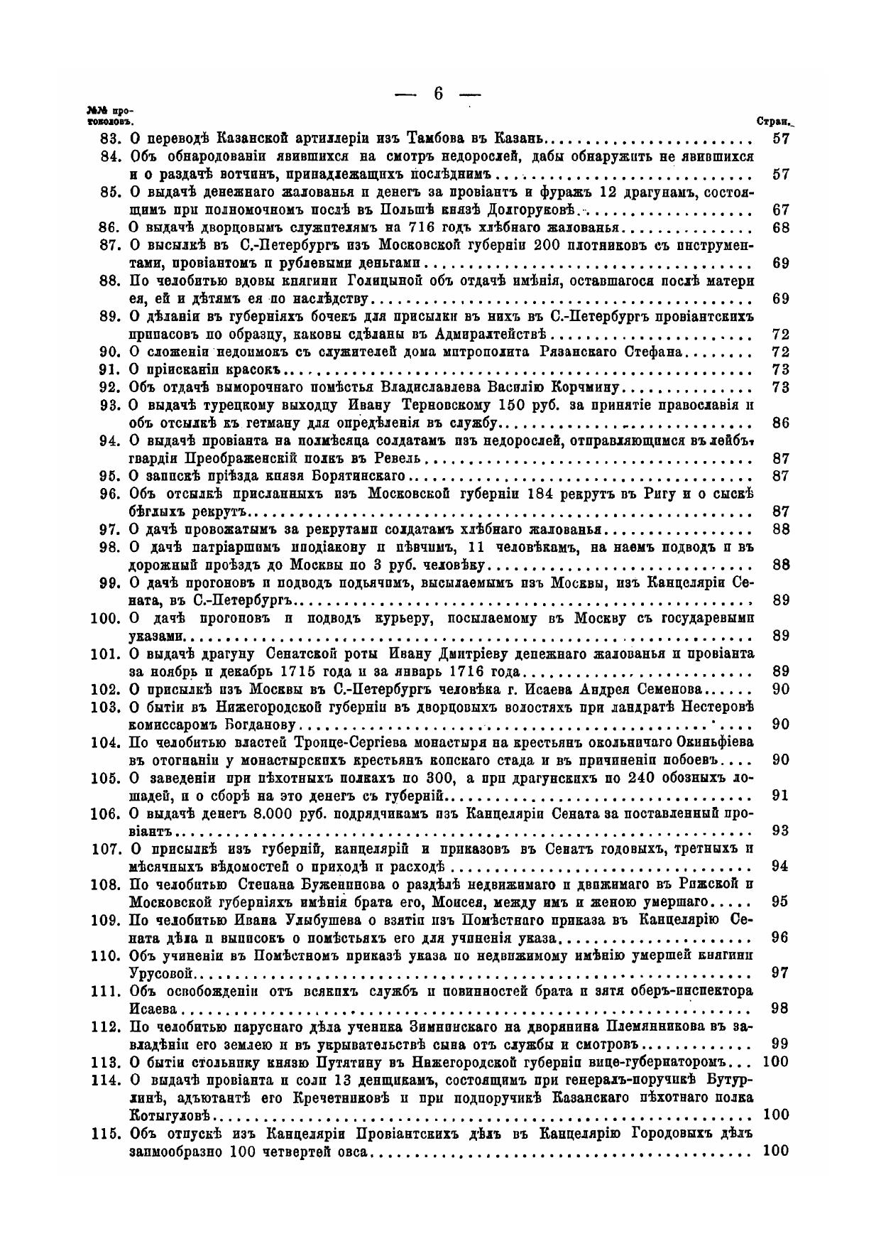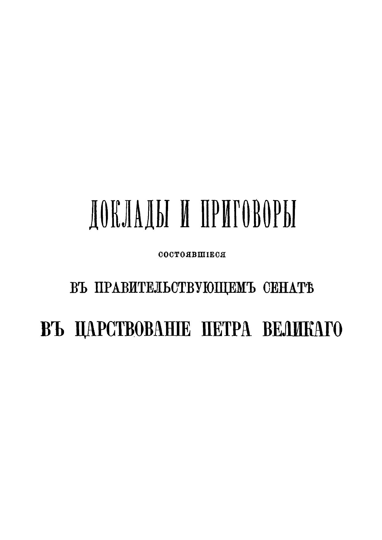 Доклады и приговоры, состоявшиеся в Правительствующим Сенате в царствование Петра Великого. Том 6
