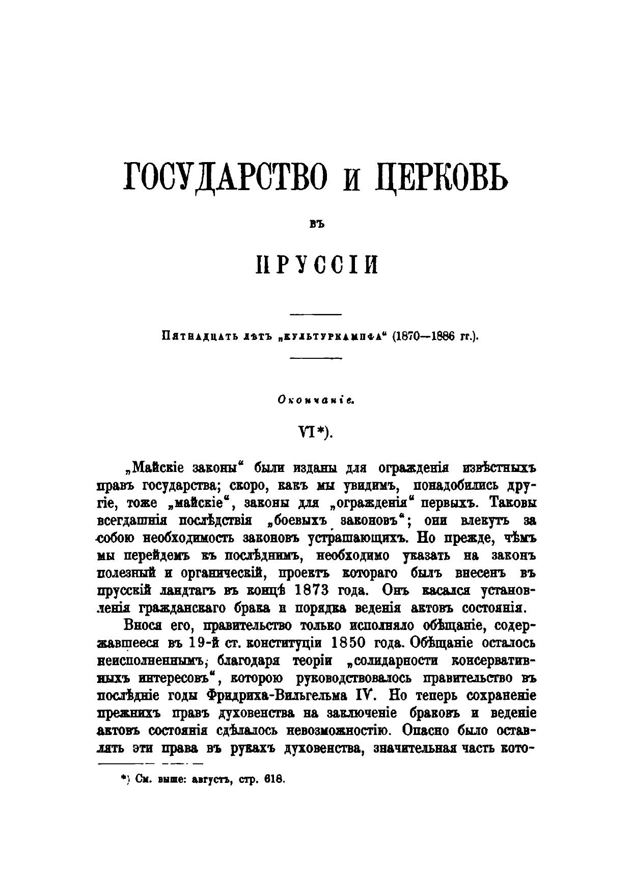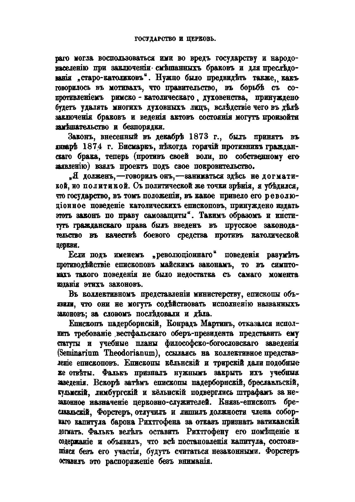 Государство и Церковь в Пруссии. Пятнадцать лет культуркампфа. Статья Вторая
