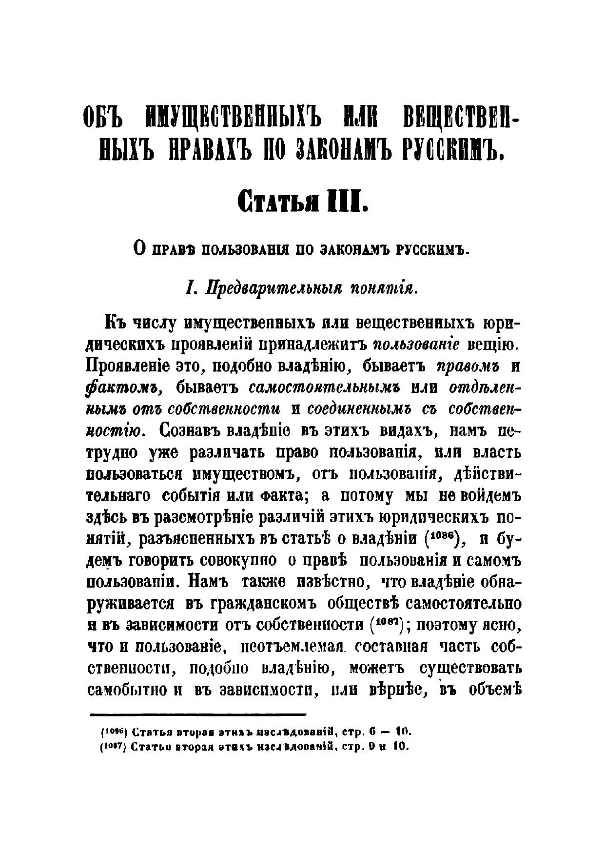 Исследованя об имущественных или вещественных правах по законам русским. Статья 3. О праве пользования