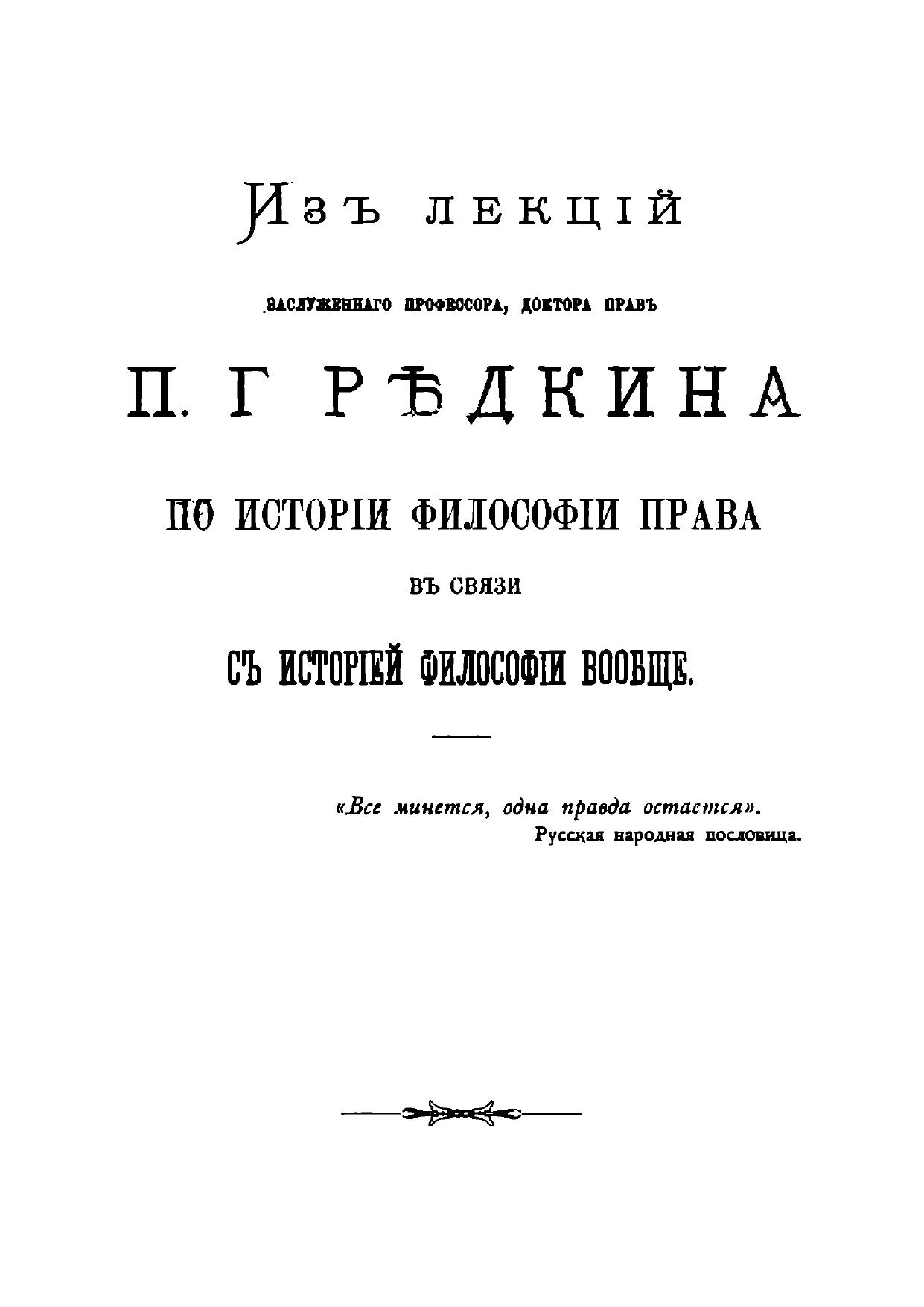 Из лекций заслуженного профессора доктора прав Редкина П.Г. по истории философии права в связи с историей философии вообще. Том 5