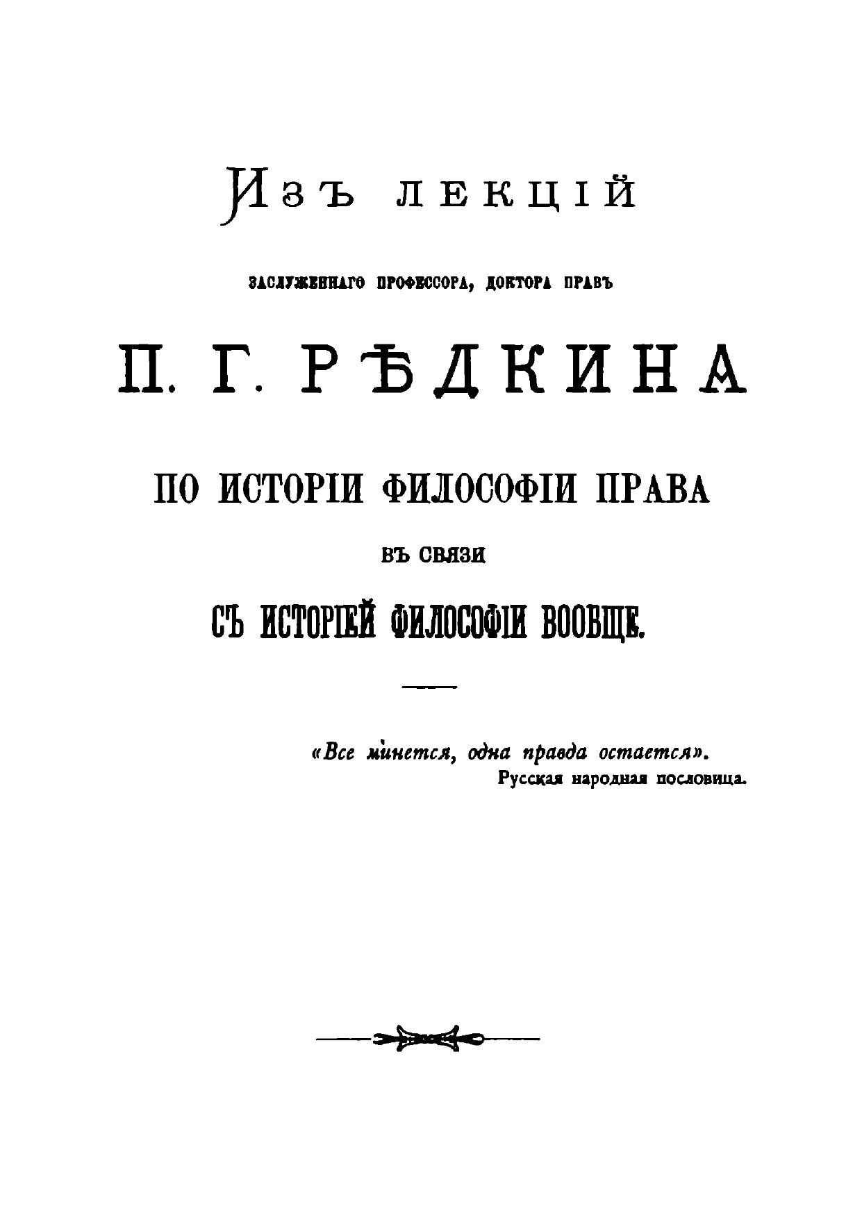 Из лекций заслуженного профессора доктора прав Редкина П.Г. по истории философии права в связи с историей философии вообще. Том 6