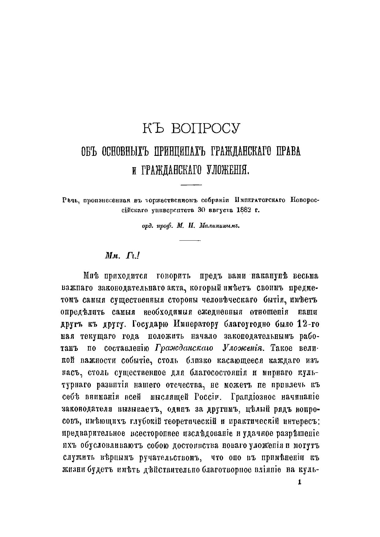 К вопросу об основных принципах гражданского права и гражданского уложения