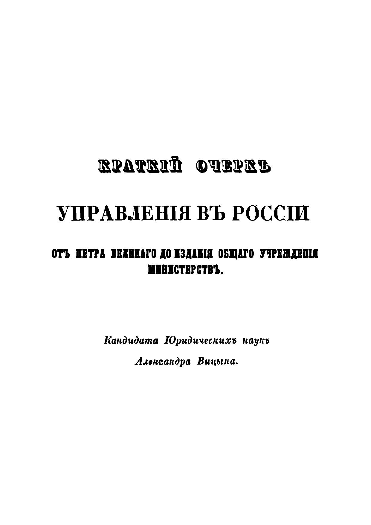Краткий очерк управления в России от Петра Великого до издания Общего учреждения министерств