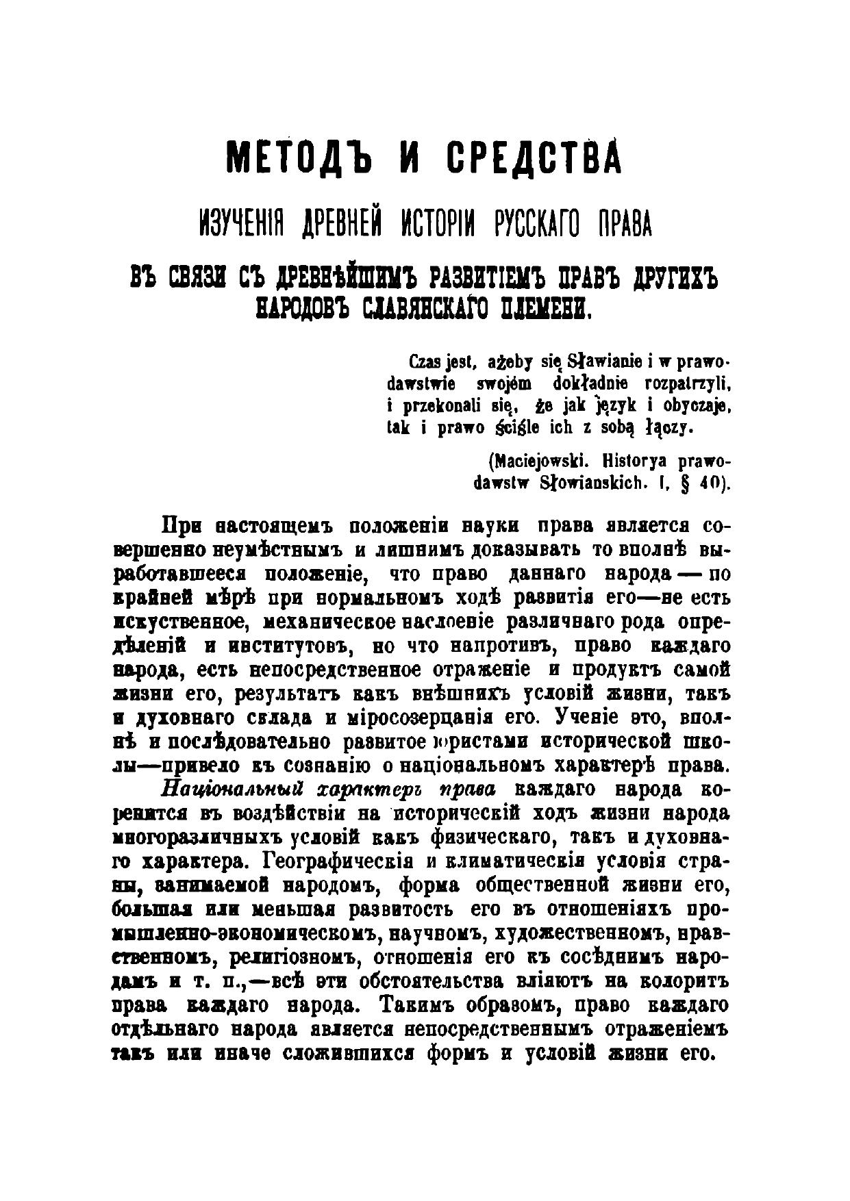 Методы и средства изучения древней истории русского права в связи с древнейшим развитием права других народов славянского племени