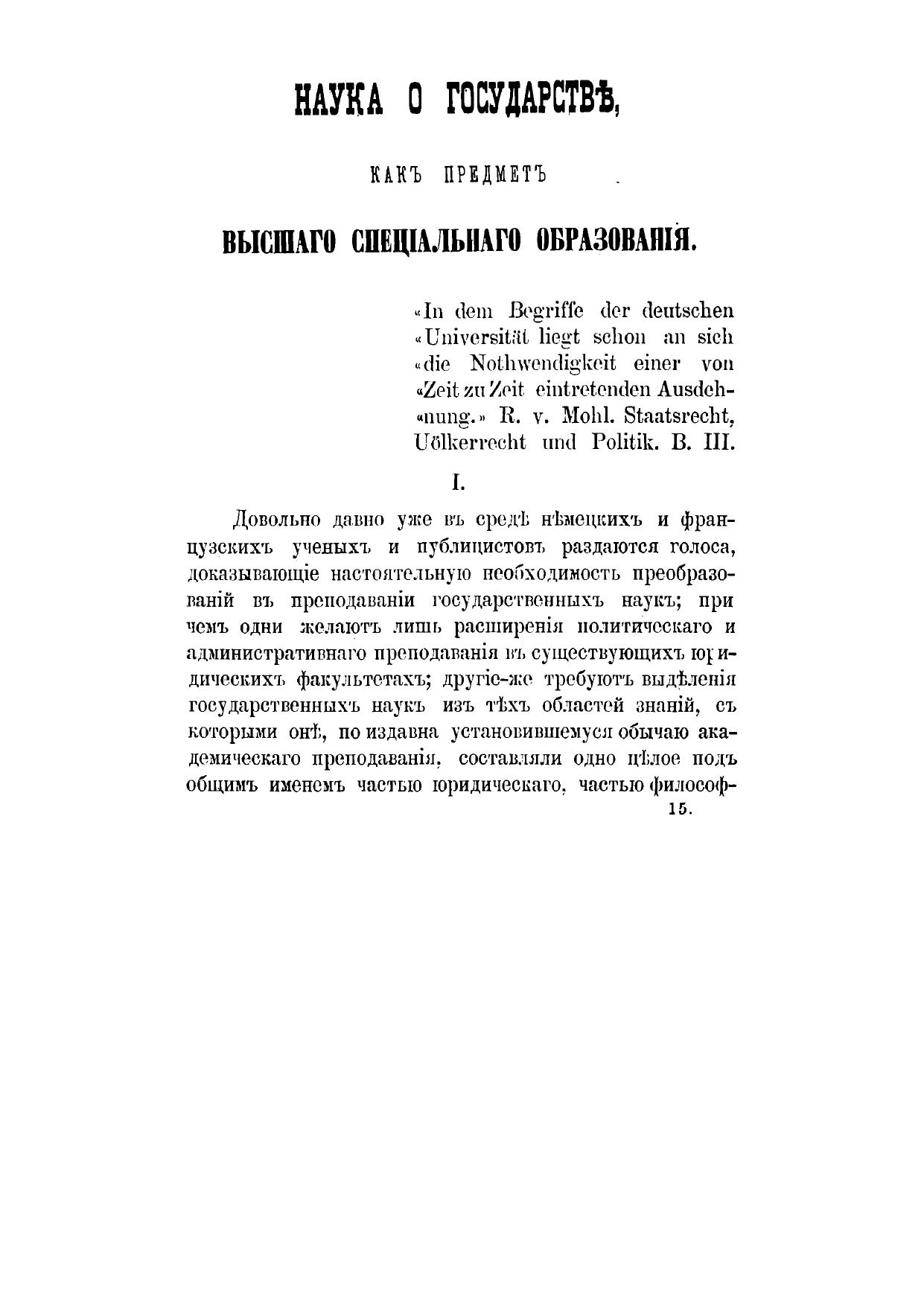 Наука о государстве, как предмете высшего университетского образования