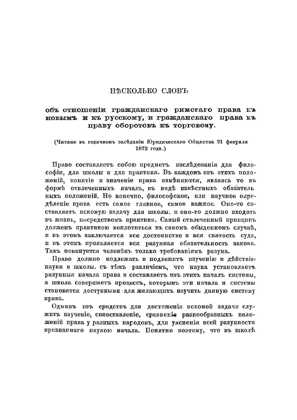 Несколько слов об отношении гражданскаго римскаго права к новым и к русскому, и гражданскаго права к праву оборотов к торговому