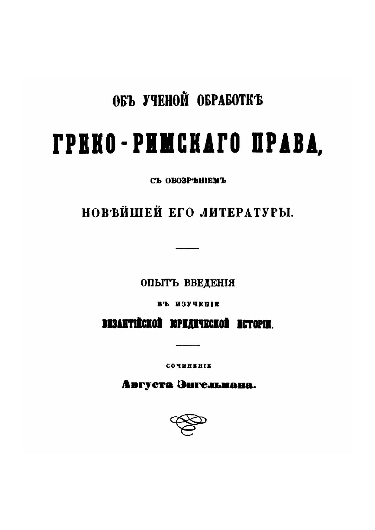 Об ученой обработке греко-римского права с обозрением новейшей его литературы. Опыт введения в изучение византийской юридической мысли